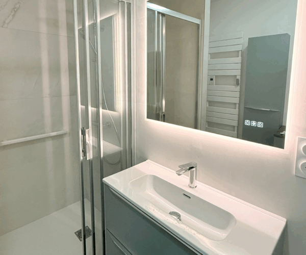 Les Salles de bains d’Inès est specialisée dans la conception, la création et la rénovation de salles de bains complètes sur mesure , nos collaborateurs sont à votre écoute afin d’élaborer avec vous le projet que vous souhaitez . Nous sommes ainsi en mesure de vous proposer une salle de bain complète clé en main.