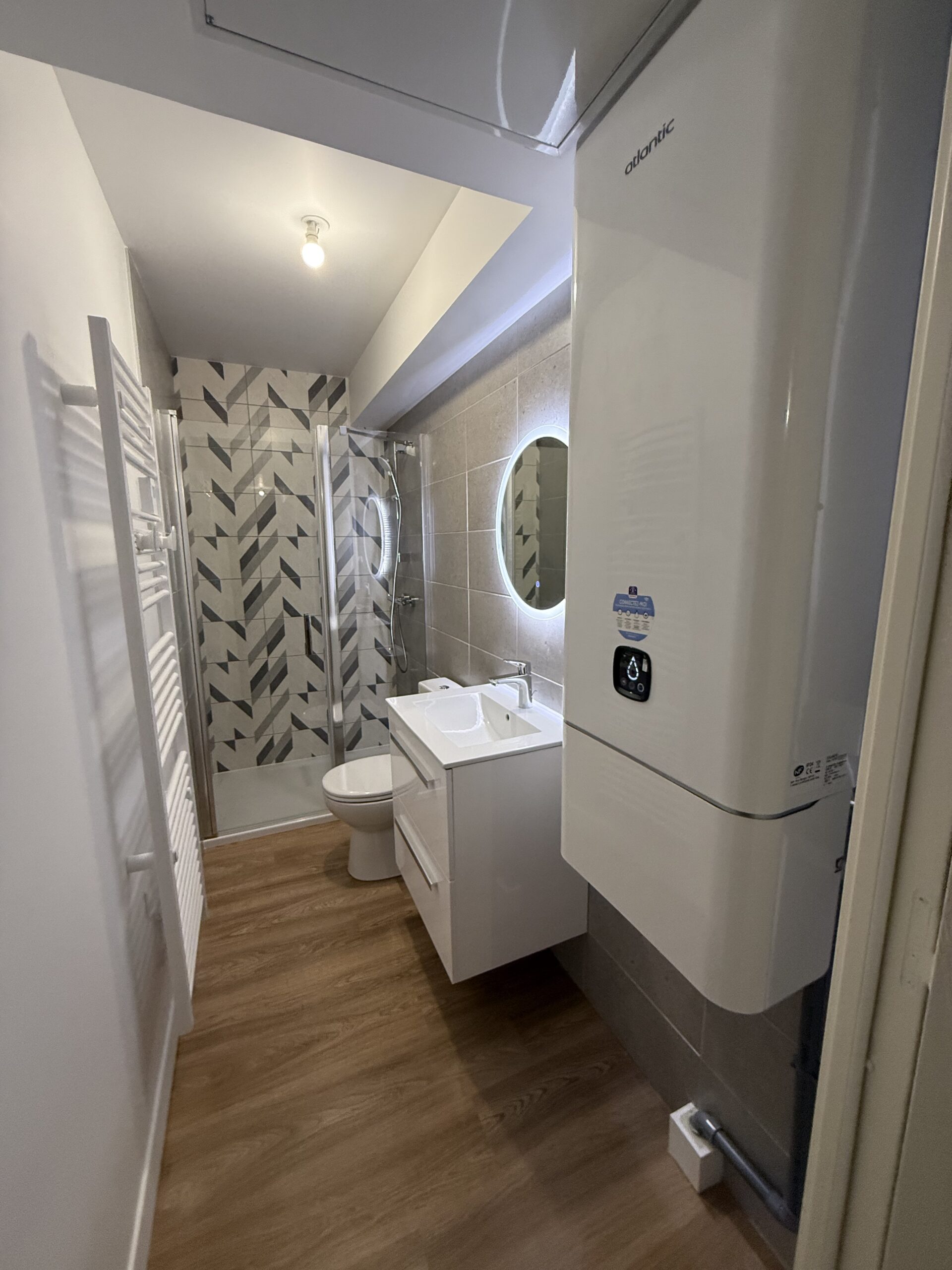 - L’installation d’un sèche-serviettes de la marque Atlantic de la gamme Doris