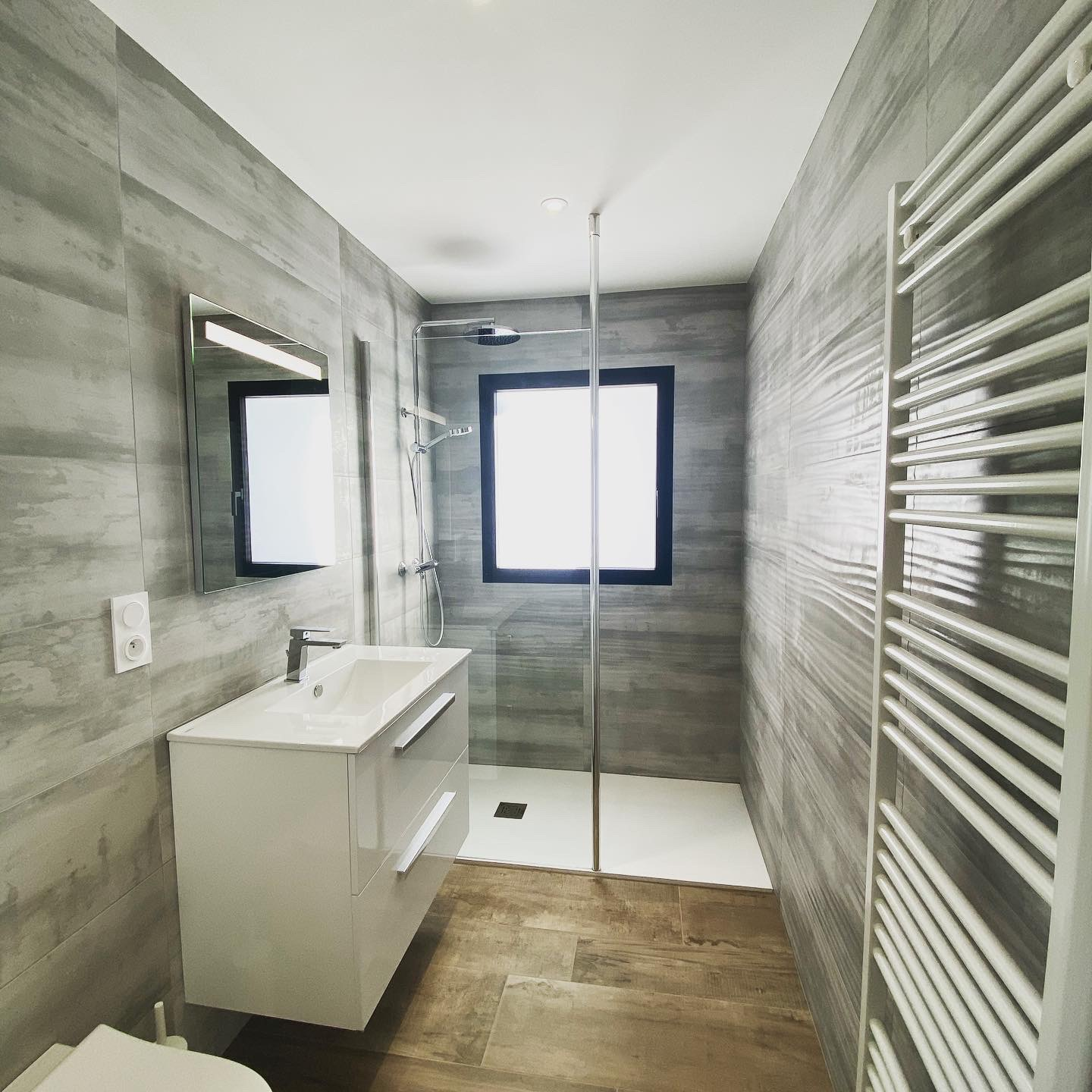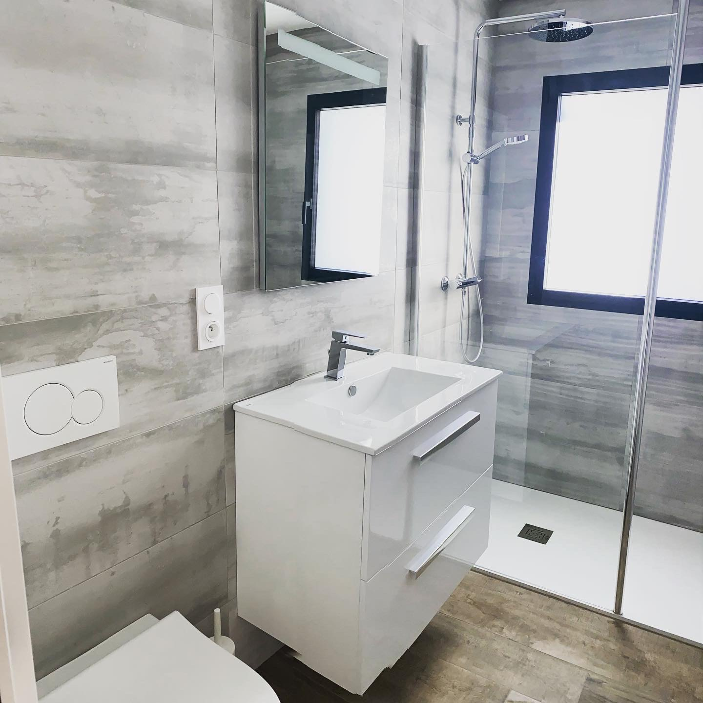 Notre entité Les Salles de bains d’Inès a procédé à la réalisation d’une salle de bain complète ainsi que d’un wc invité sur la commune de Guidel.