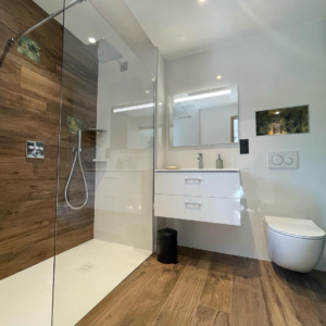Notre entité Les Salles de bains d’Inès a procédé à la réalisation de cette salle de bain à Guidel .