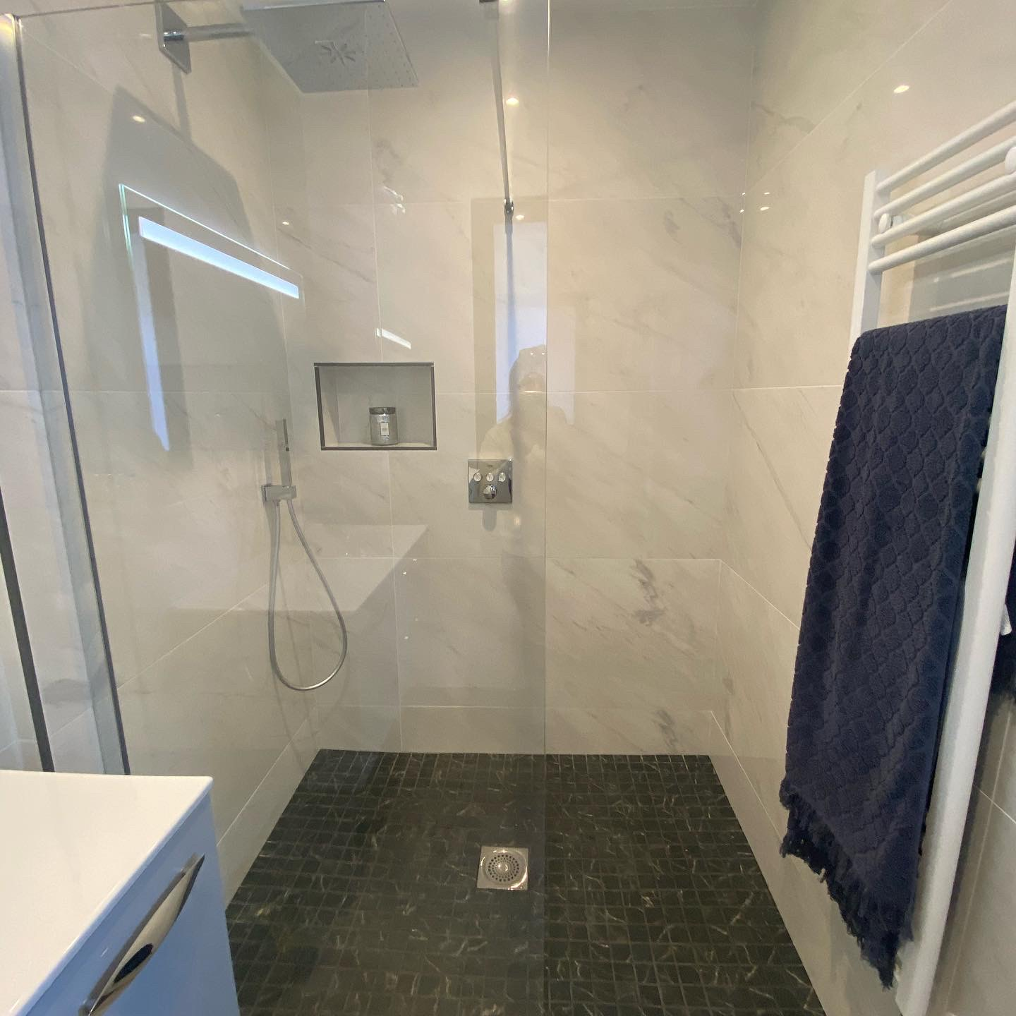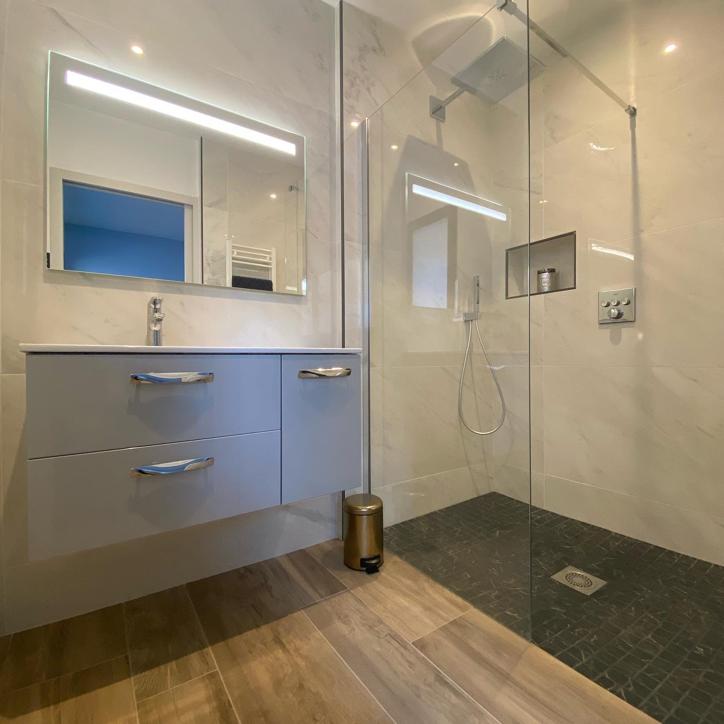 Notre entité Les Salles de bains d’Inès a procédé à la réalisation de cette salle de bain  complète sur la commune de Guidel.