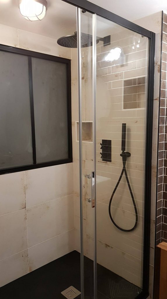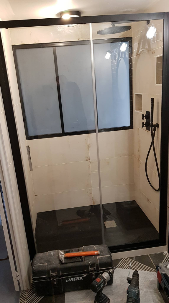 • La pose d’une paroi Novellini à profilés Noir mat