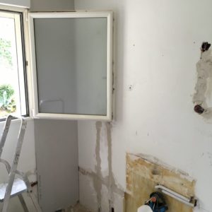- La pose de la faïence Les Exclusifs Fabrik Blanc et gris 20×40 cm de chez Point P Lorient