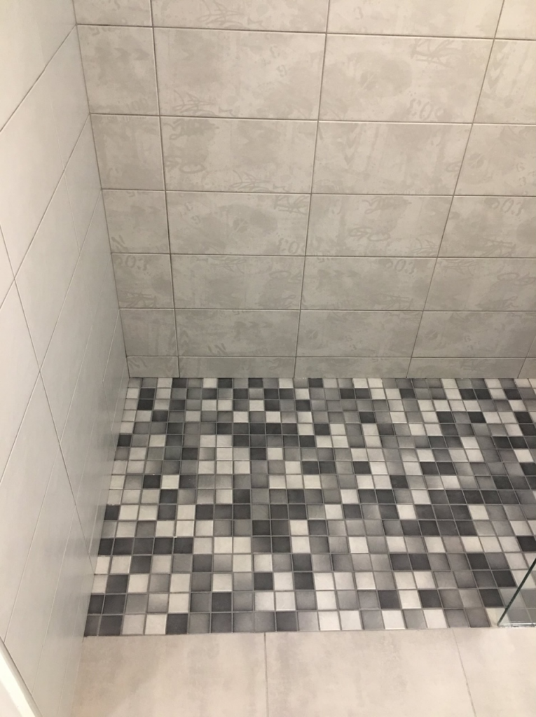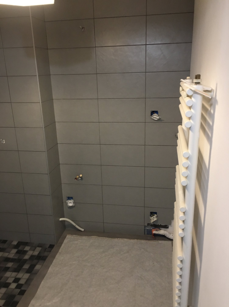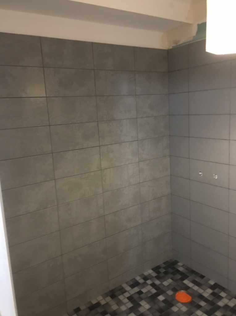 - La pose d’une faïence Arte Home Fabrick gris moyen et gris moyen décor