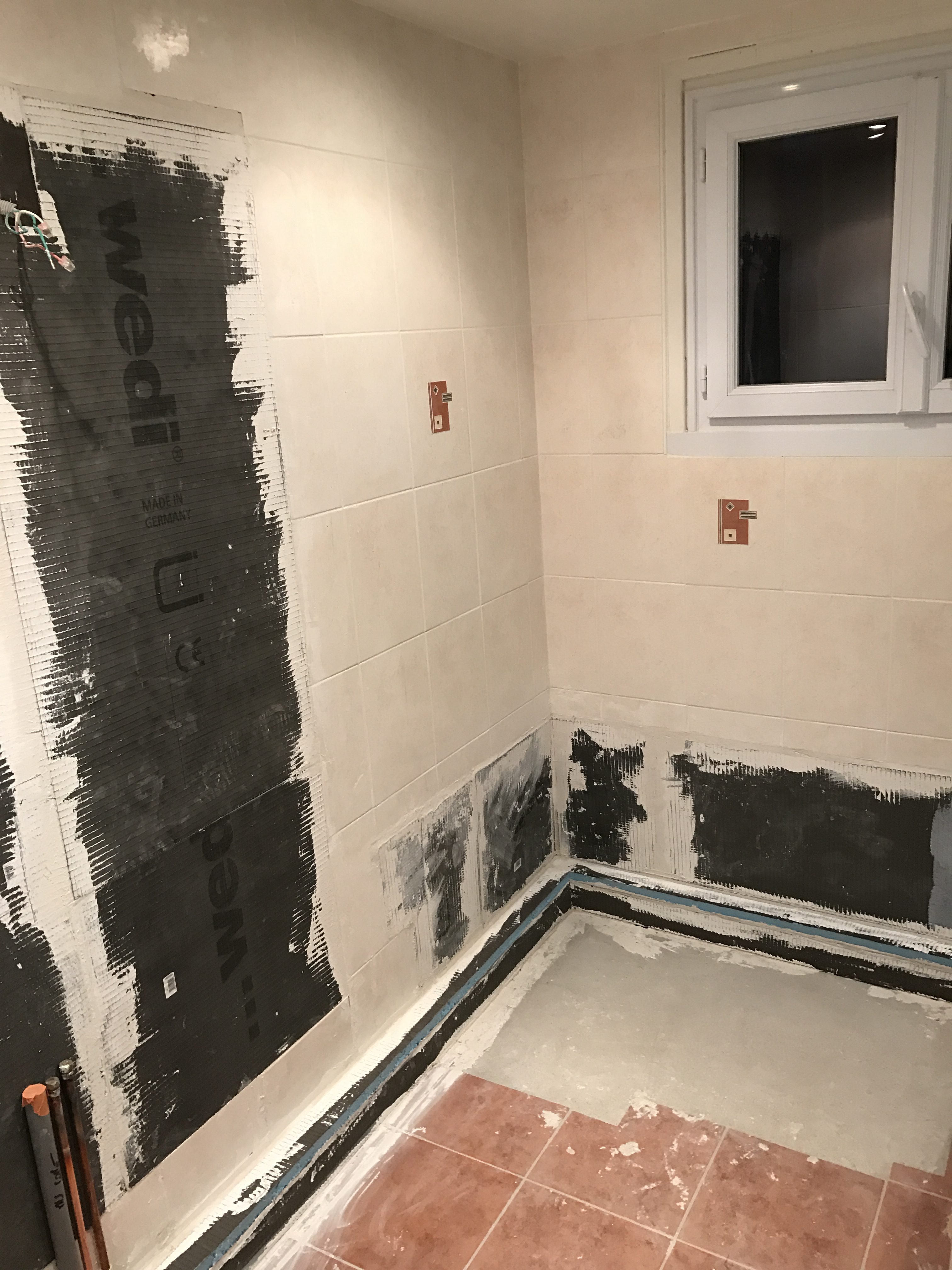 - La pose de la faïence « Naxos Soft fjord » 26×60,5 cm