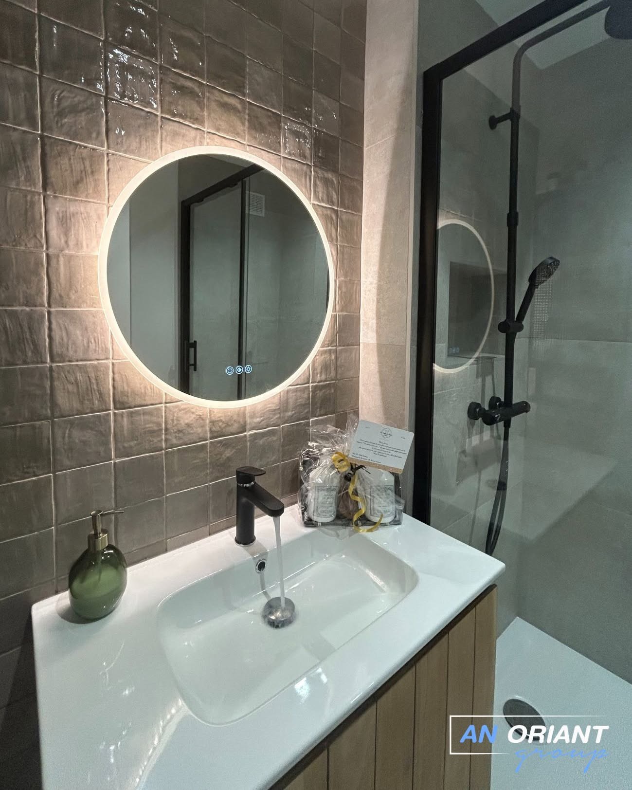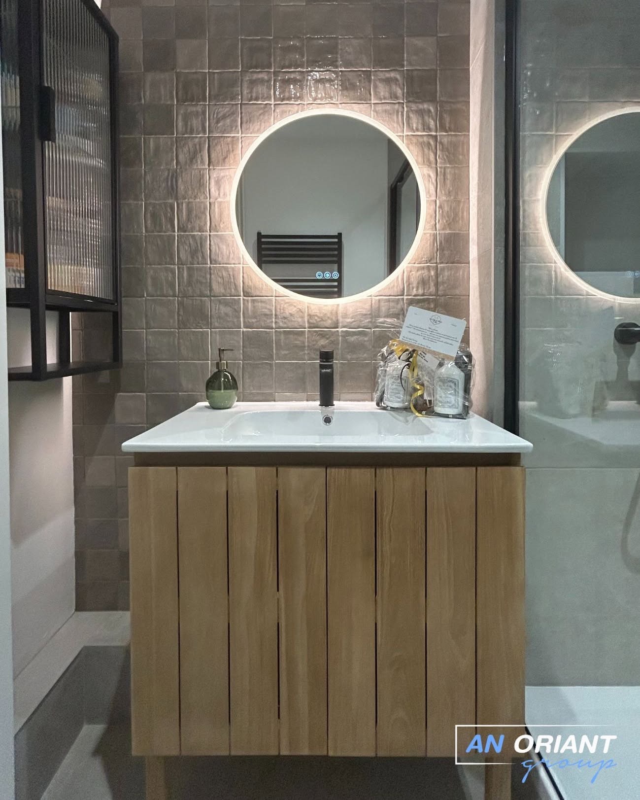 • L’installation d’un miroir led de 60 cm de la gamme Oslo (Alterna ) de chez Cedeo.