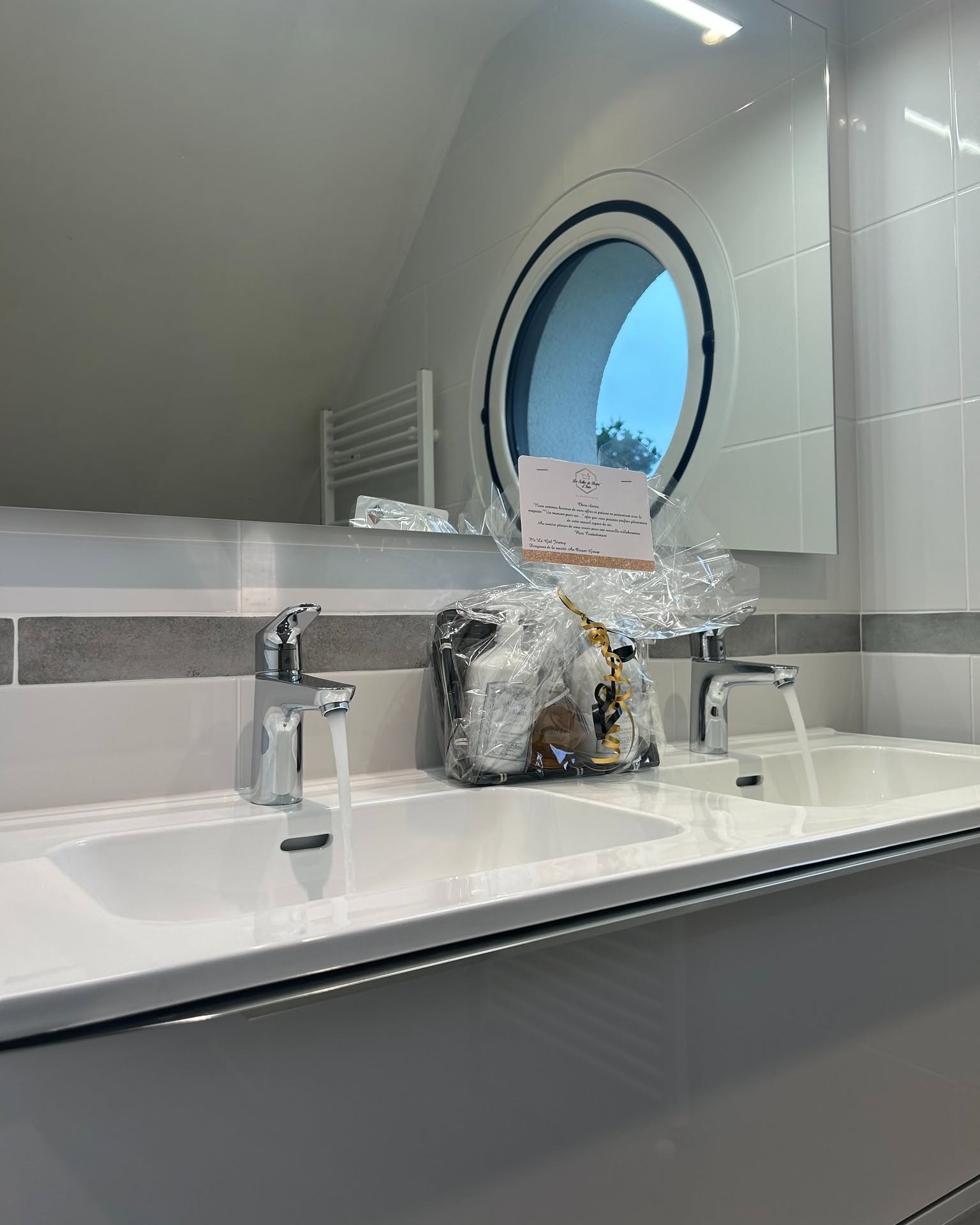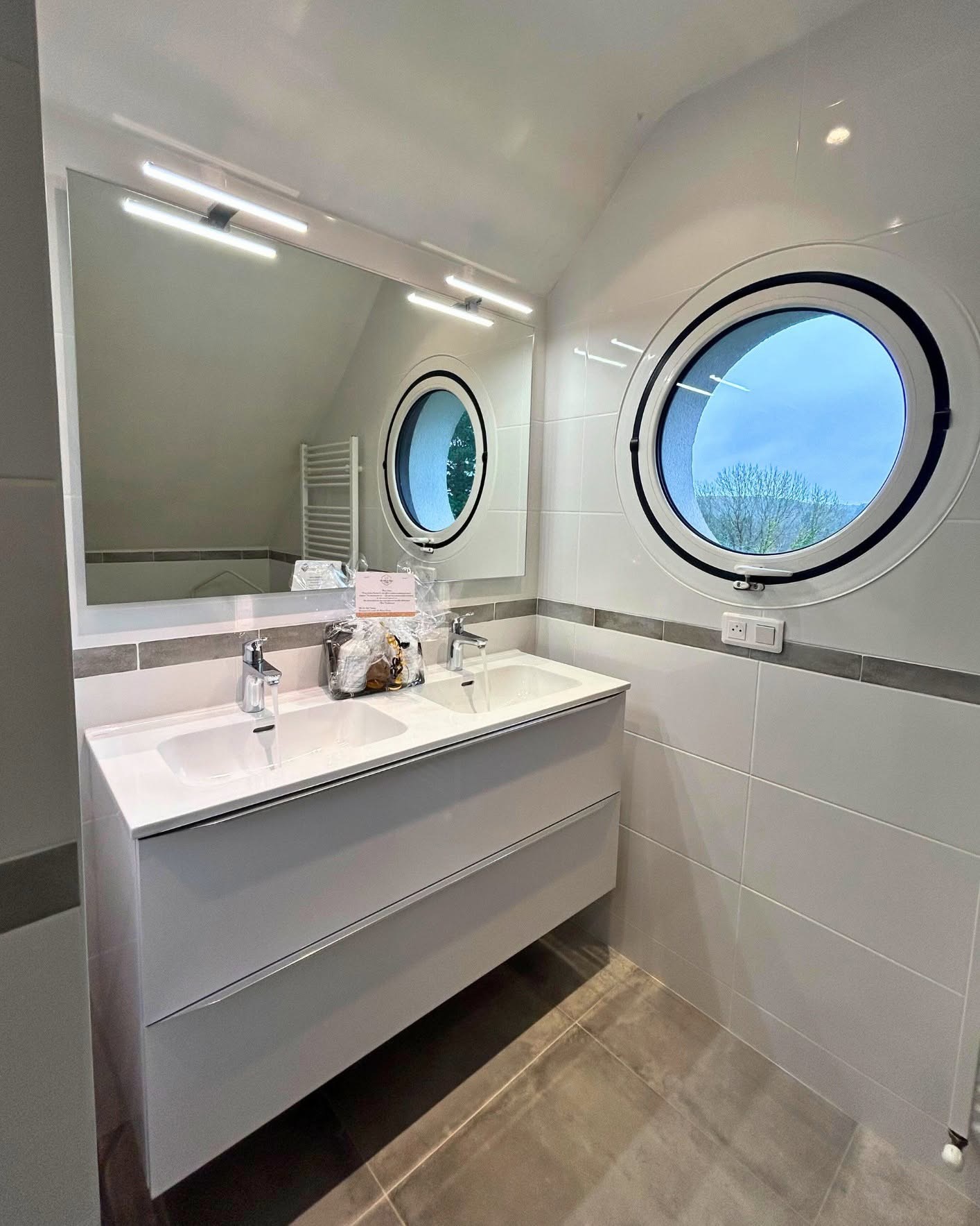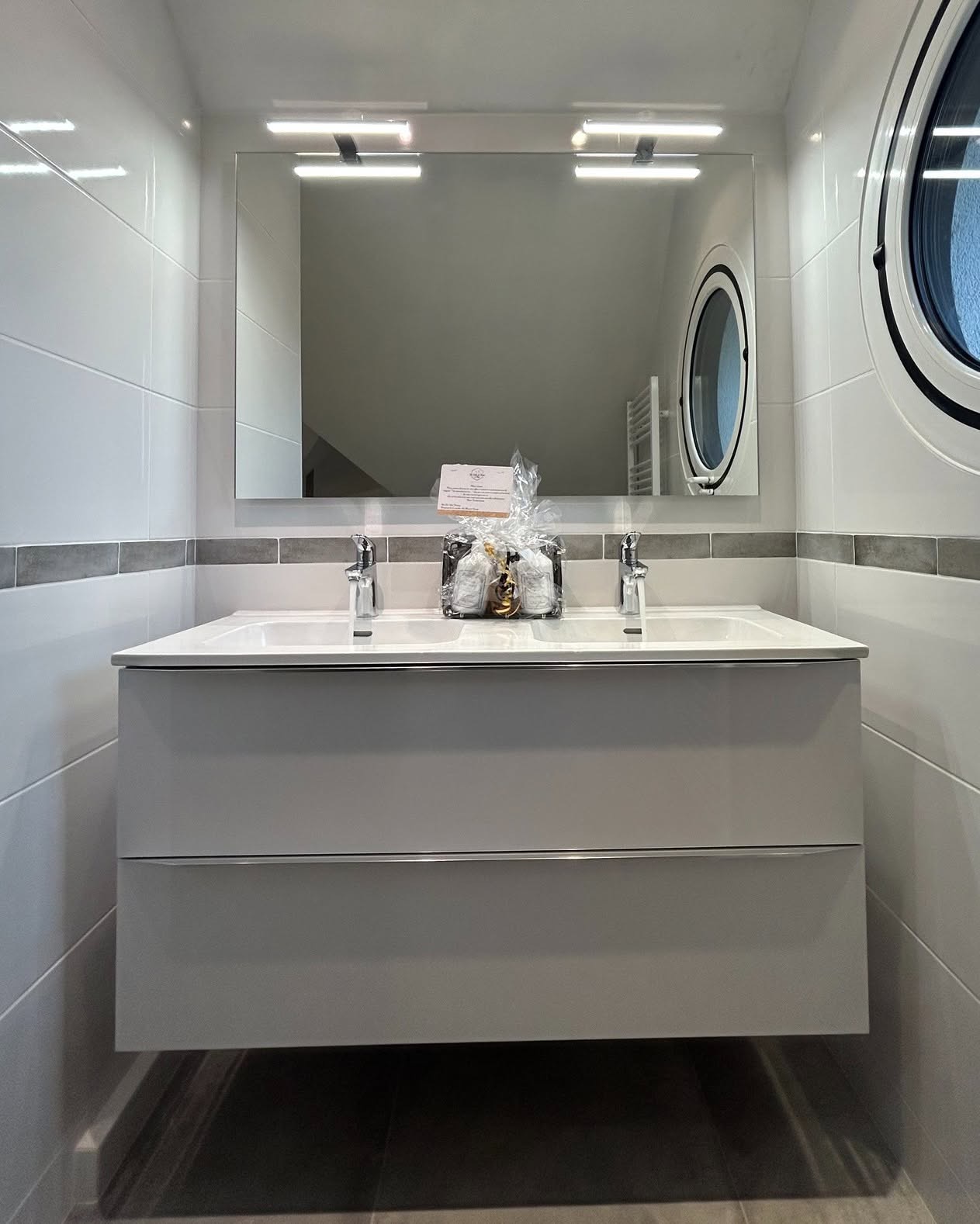 - La mise en place du miroir Led Oslo 90 cm de chez Alterna.