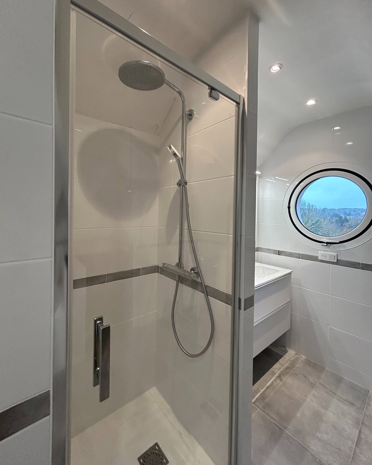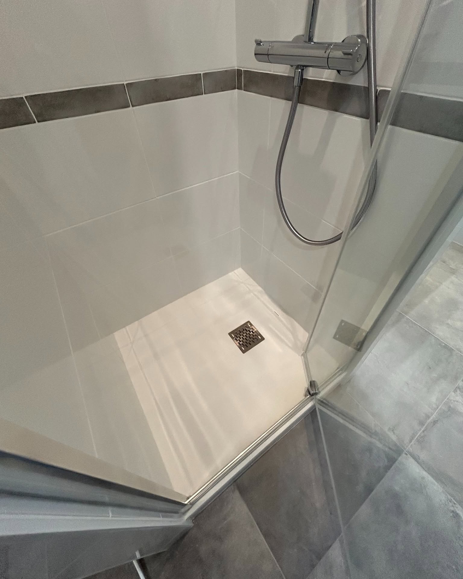 - L’installation d’une paroi de douche Concerto porte de la marque Alterna.