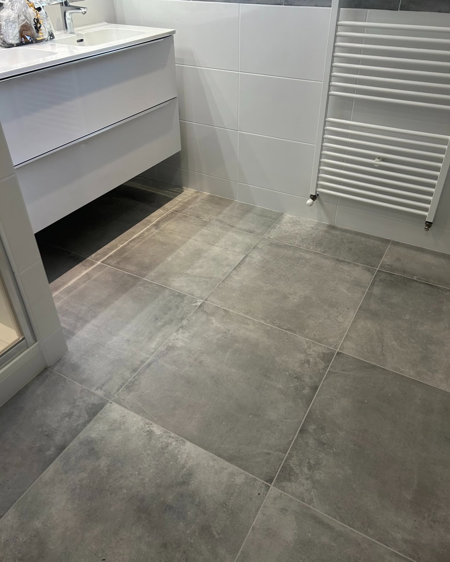 - La pose au sol d’un carreau en 60*60 cm Unika de la marque Gambini.