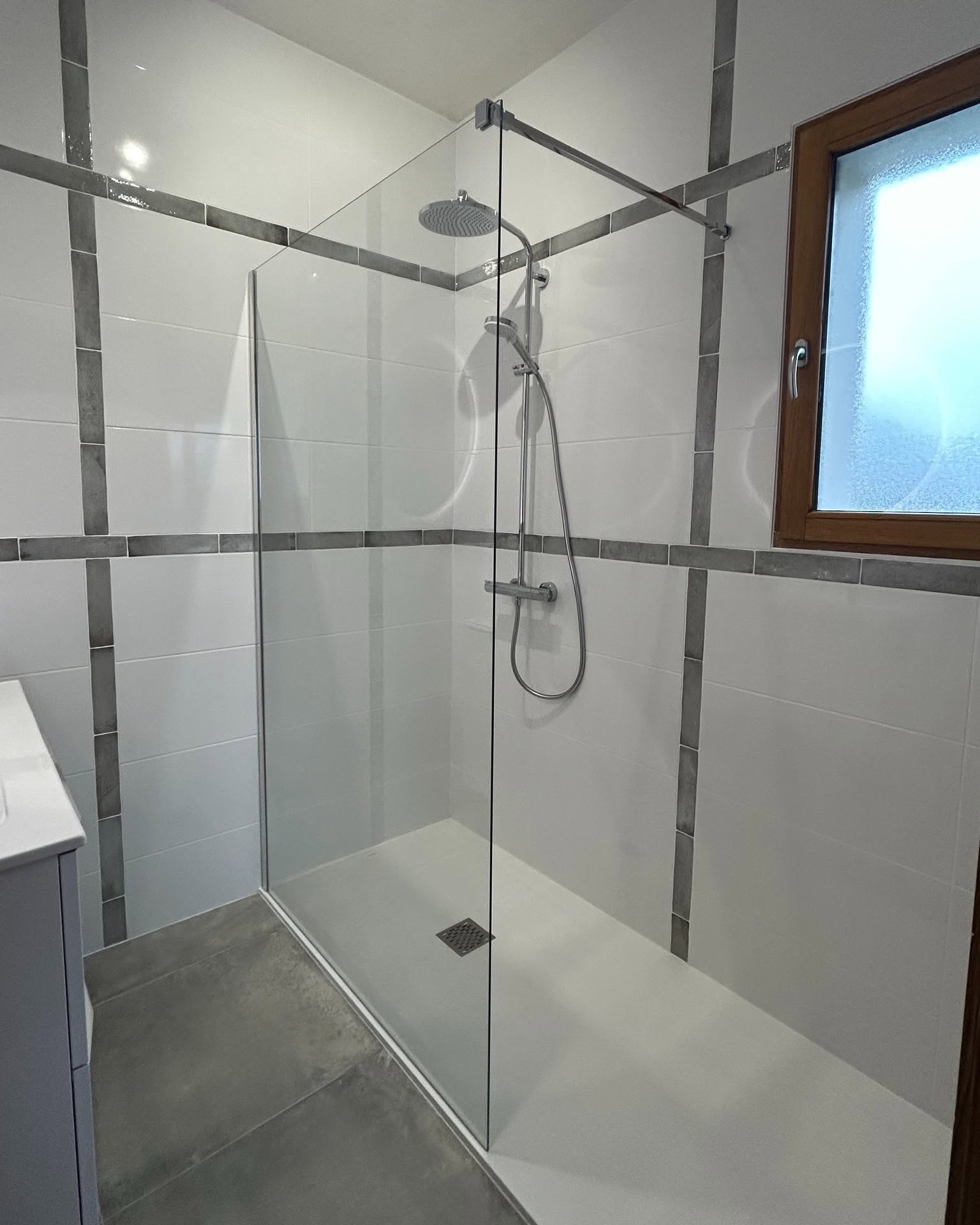 - L’installation d’une paroi de douche Concerto Walk 120*200 cm de la marque Alterna.