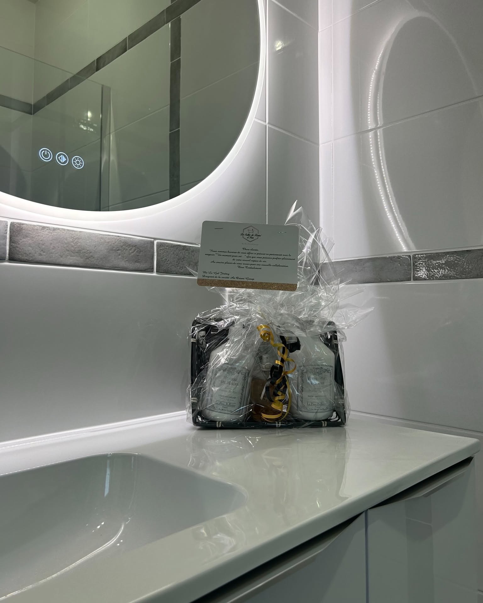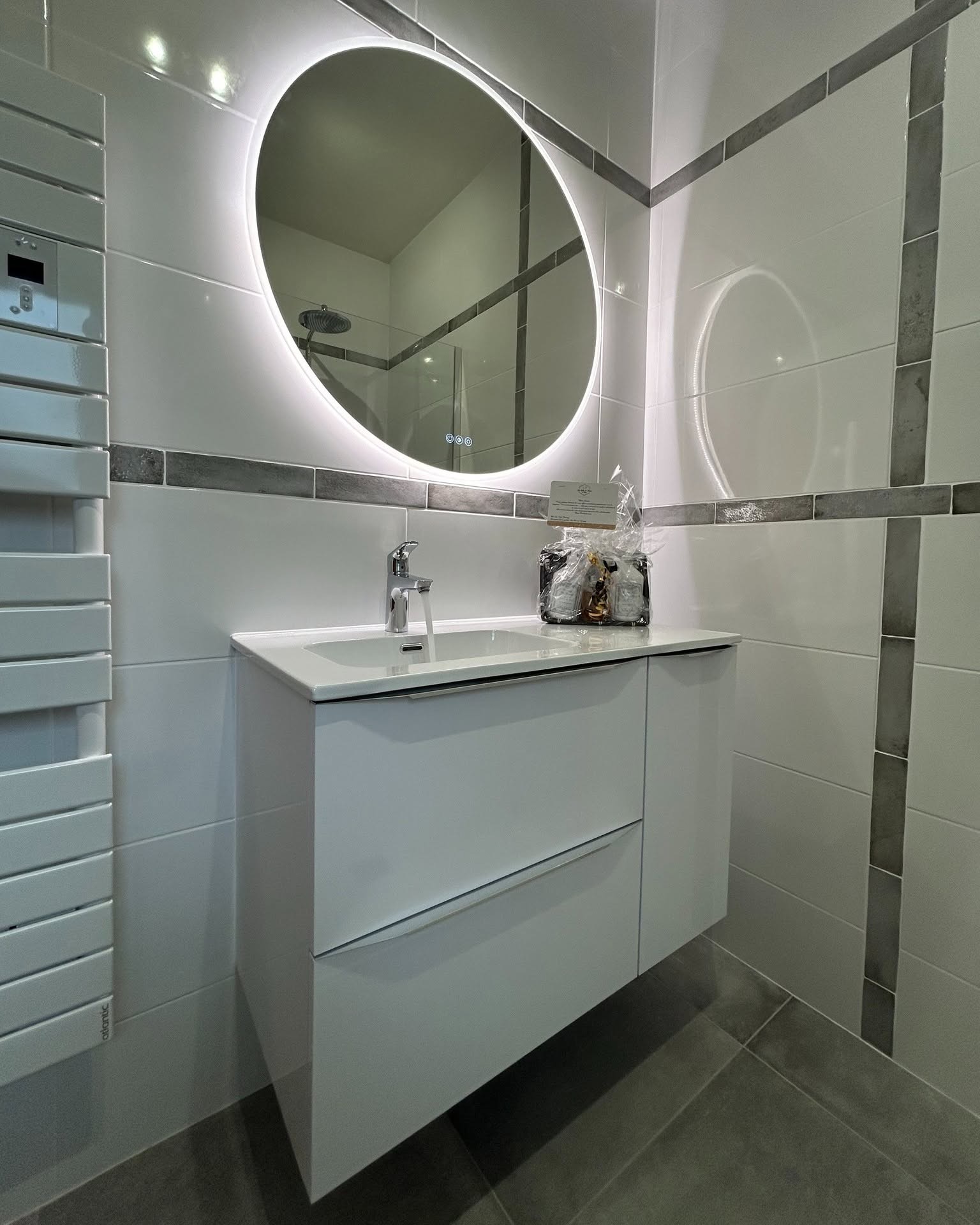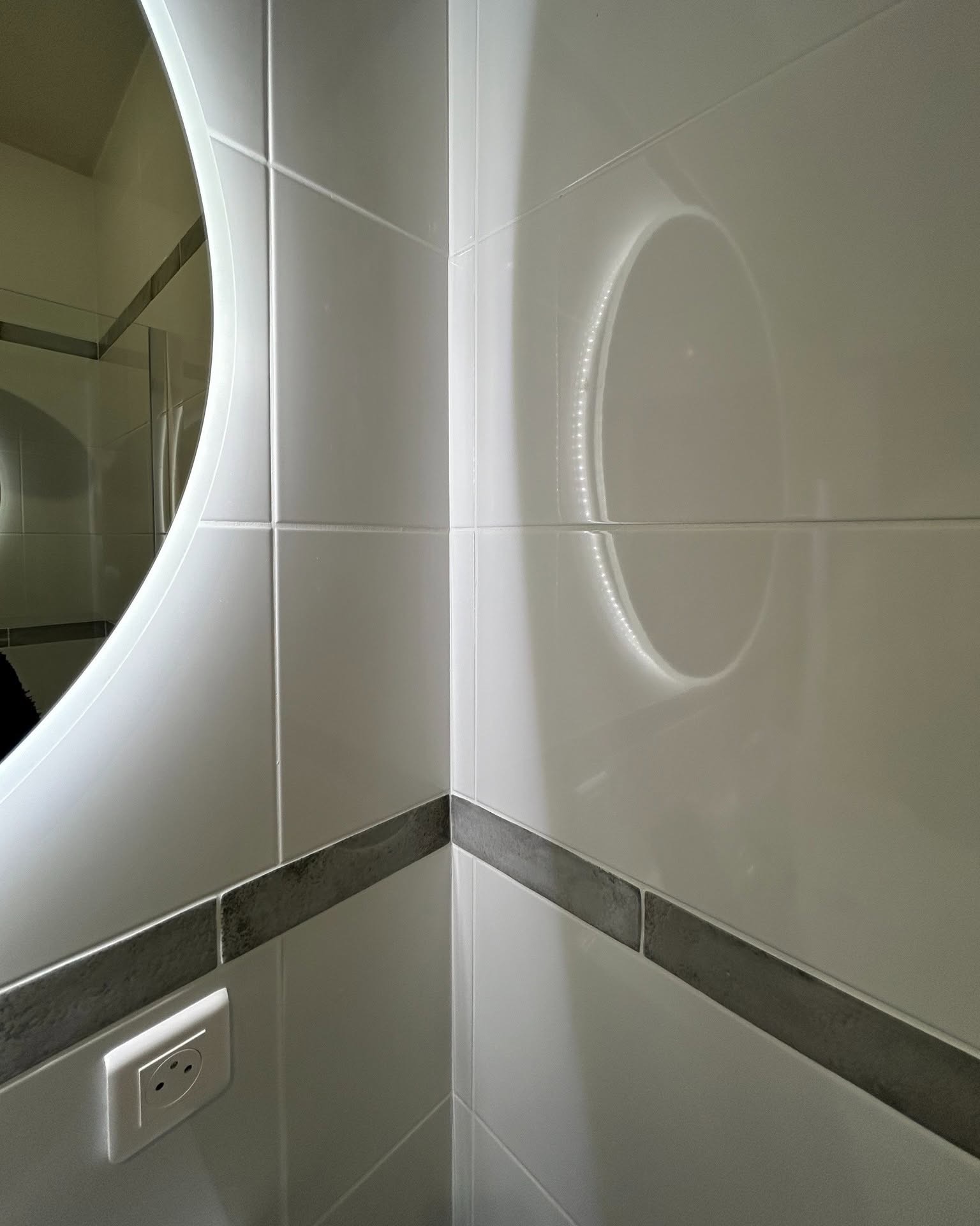 - La mise en place du miroir Led Oslo 90 cm de chez Alterna.