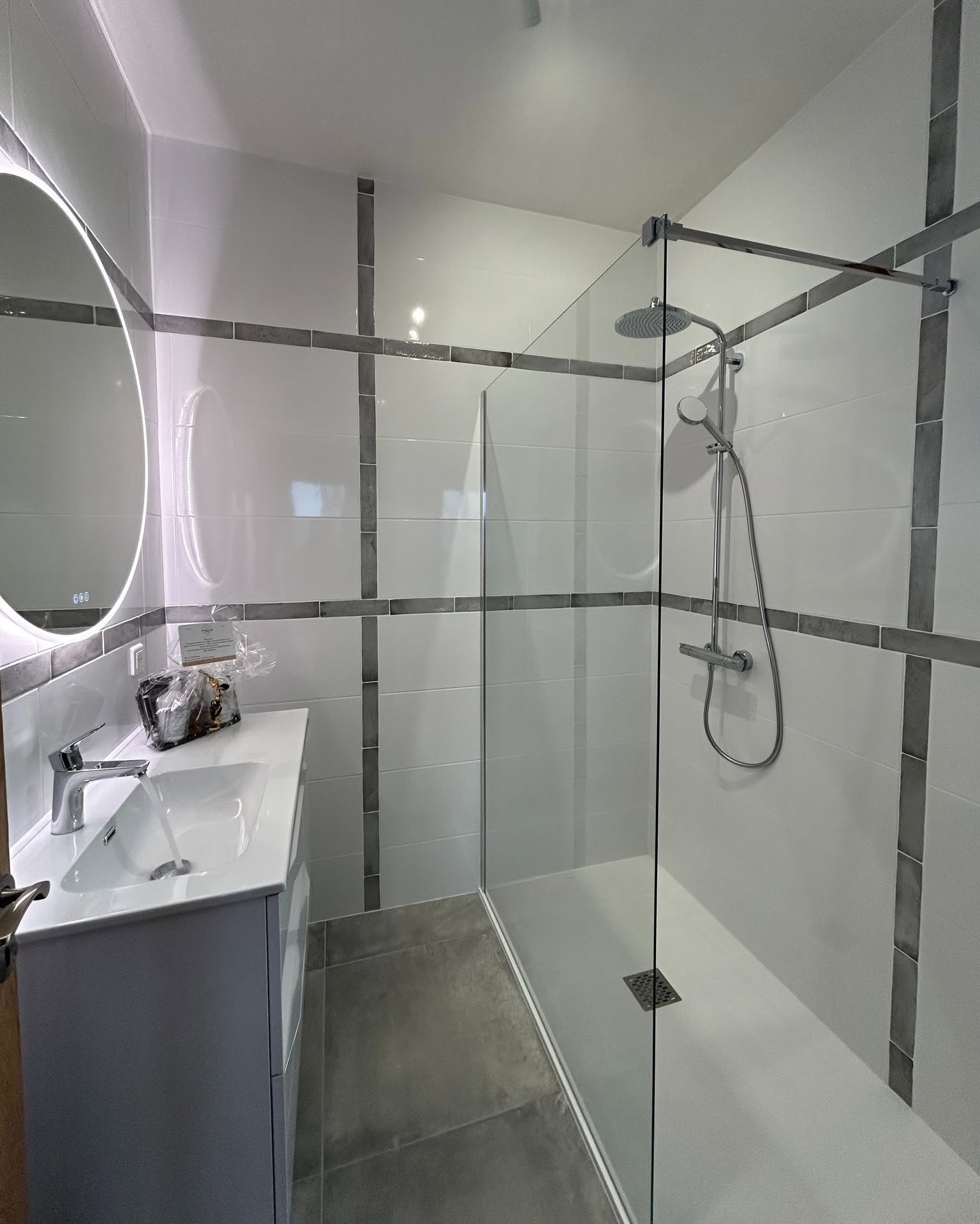 Notre entité Les Salles de bains d’Inès a procédé à la rénovation d’une salle de bain complète se trouvant sur la commune de Hennebont.