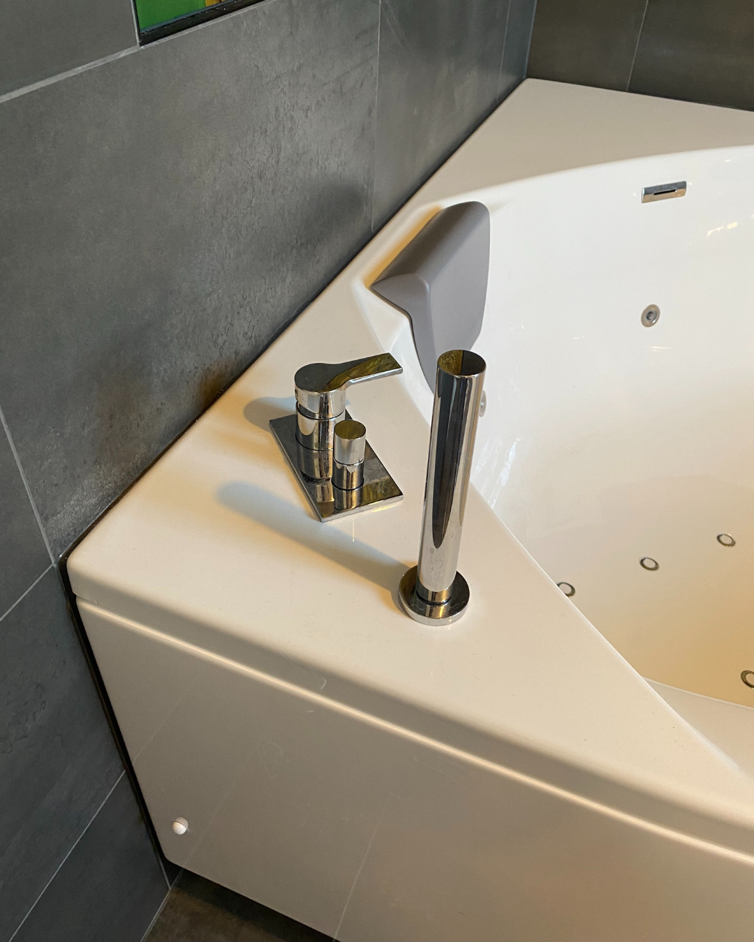 • La pose d’une baignoire balnéo d’angle Kinedo – Gamme Saphir V – Blanc 140*140 cm