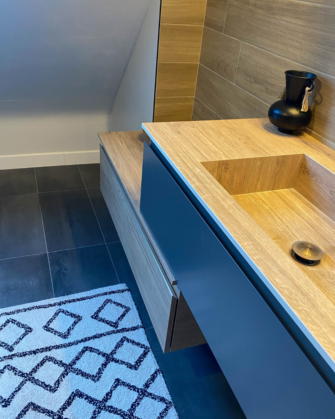 • La pose d’un meuble sous-vasque 1 tiroir Sanijura – Gamme Halo – Gris Anthracite 100 cm