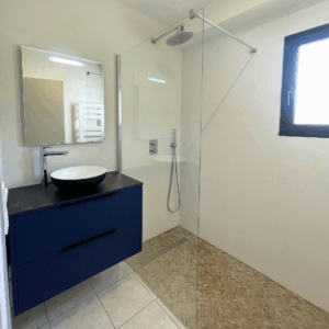 Le travail sur les volumes, la circulation et les équipements a permis d’obtenir une salle de bains à la fois pratique et agréable à vivre, tout en conservant une ligne esthétique moderne et intemporelle. Plusieurs années après sa réalisation, ce projet reste actuel et démontre l’importance d’une conception réfléchie et d’une mise en œuvre de qualité.
