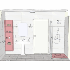- La pose d’une colonne de rangement ouverte Burgbad – Coloris personnalisé RAL 3014