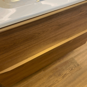 - La pose d’un meuble sous vasque 2 tiroirs Alterna – Gamme Plénitude – Coloris Chêne noisette 90 cm
