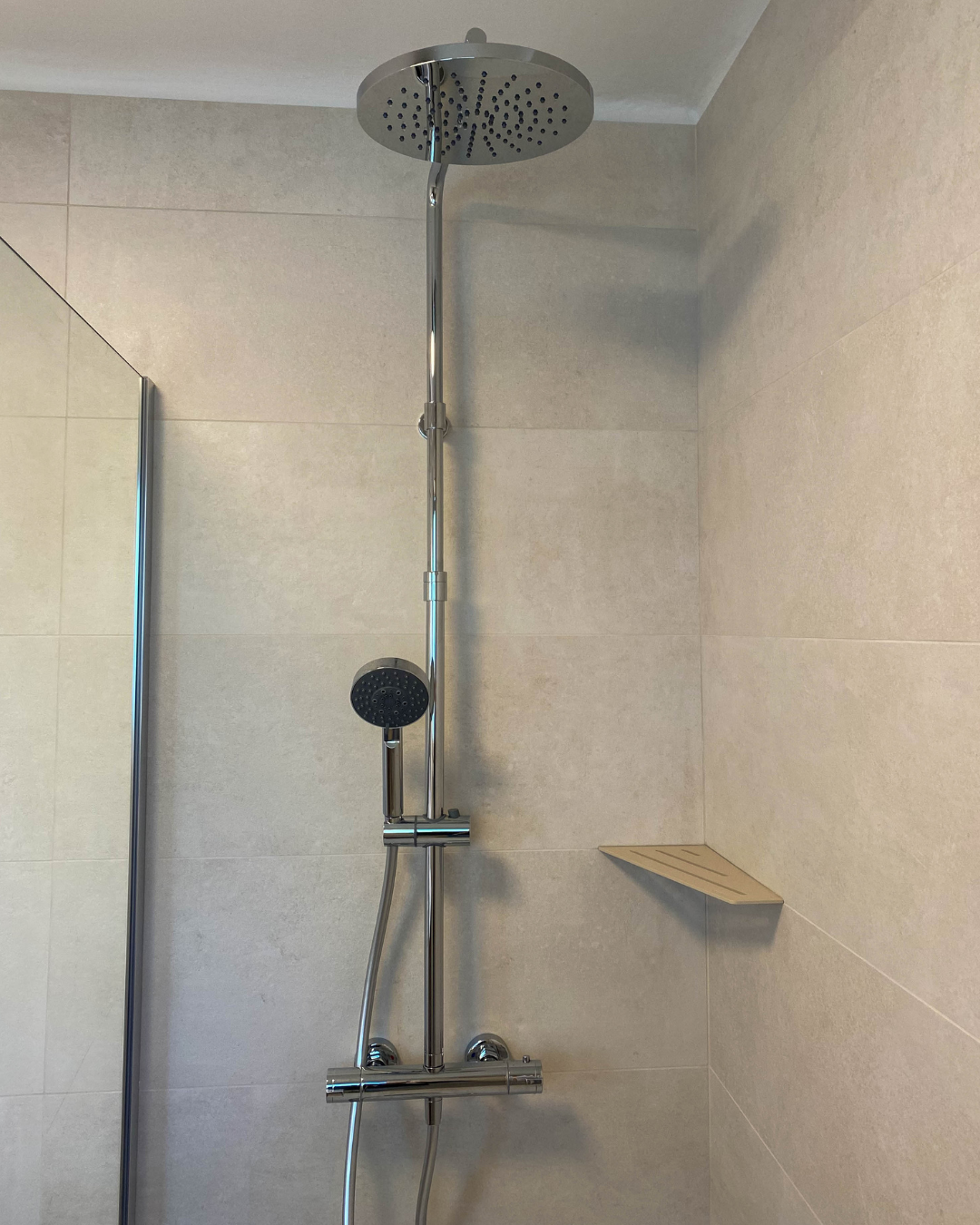 - L’installation d’une colonne de douche avec mitigeur thermostatique Alterna – Gamme Concerto 4 – Chromé