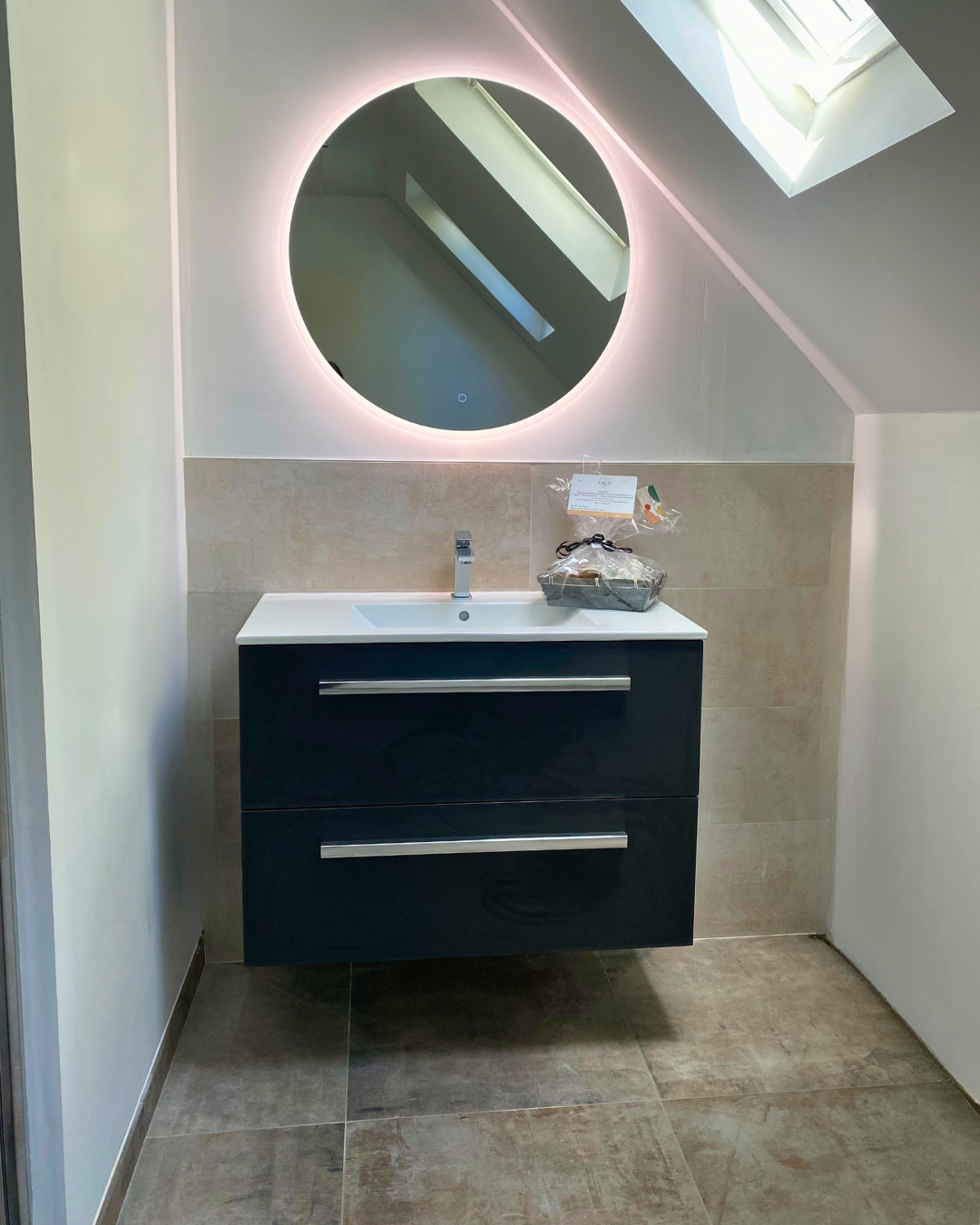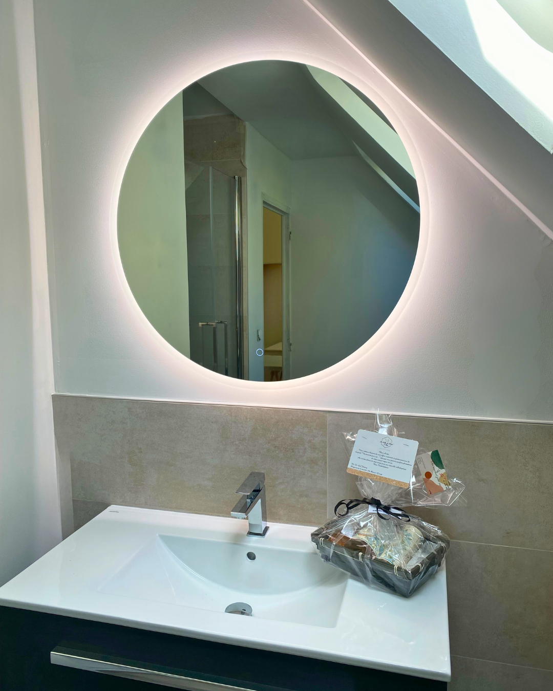 • L’installation d’un miroir rond LED MP Glass – Gamme Ring de 80 cm de diamètre