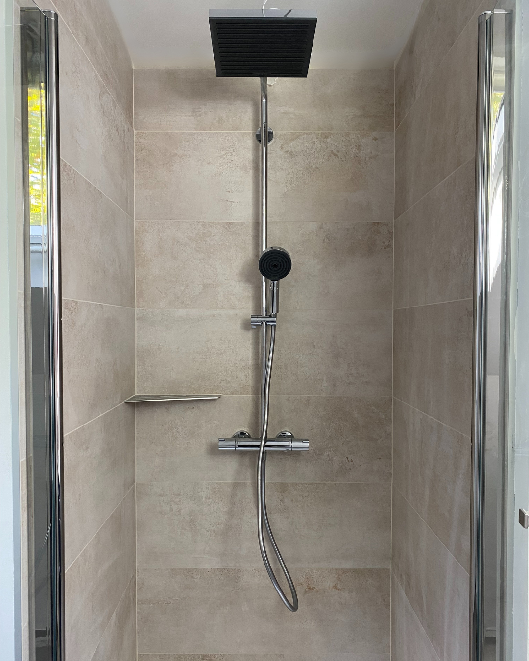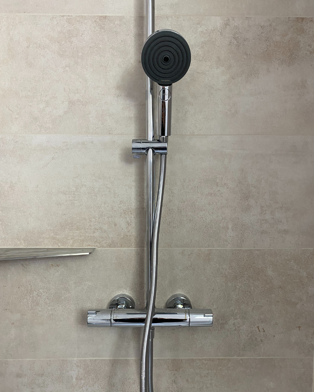 • La pose d’une colonne de douche avec mitigeur thermostatique Hansgrohe – Gamme Pulsify en teinte chromé