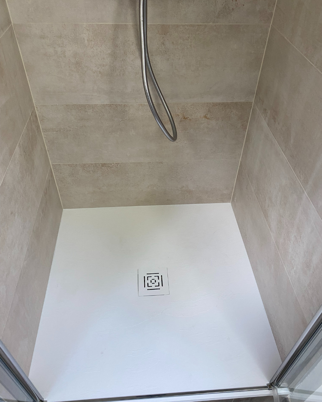 • L’installation d’un receveur Alterna – Gamme Daily’O en blanc avec un aspect ardoise de dimensions 90*90 cm