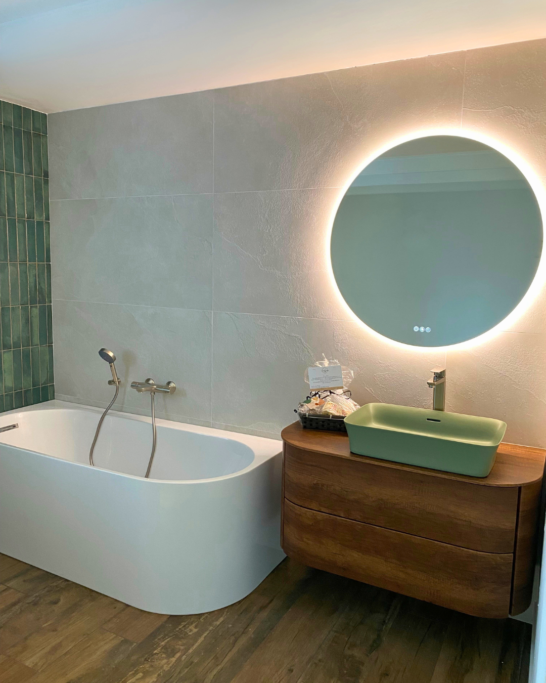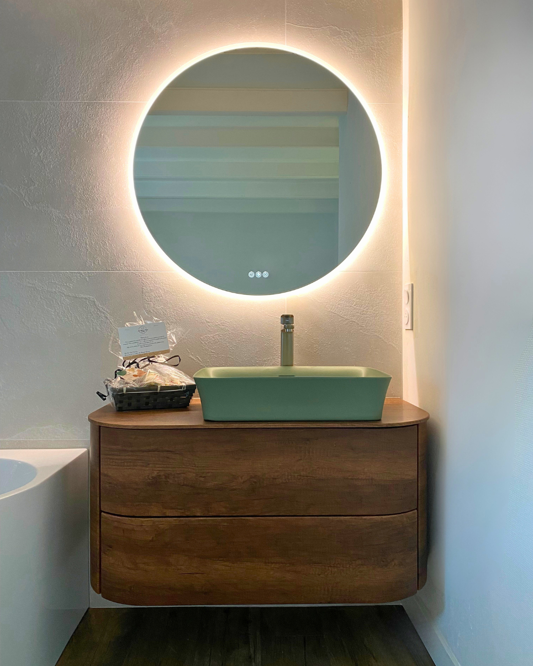 • L’installation d’un miroir rond LED Alterna – Gamme Oslo de 90 cm de diamètre