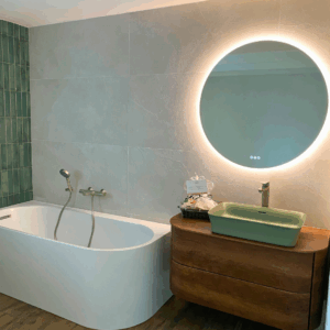 - L’installation d’un miroir rond LED Alterna – Gamme Oslo de 90 cm de diamètre