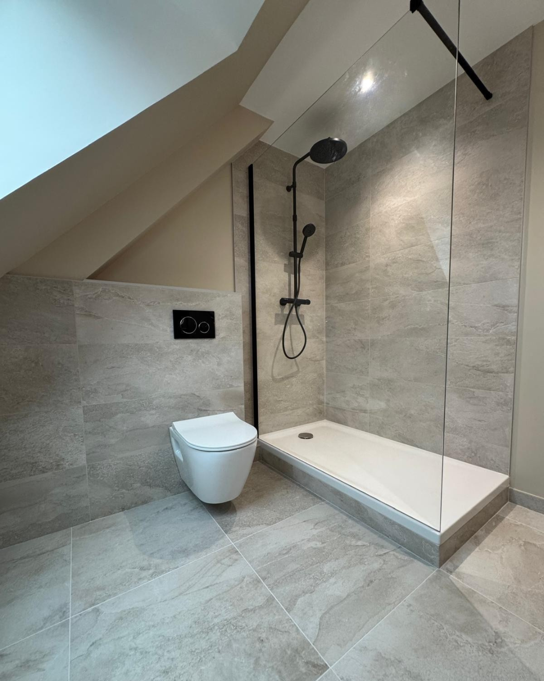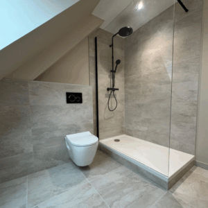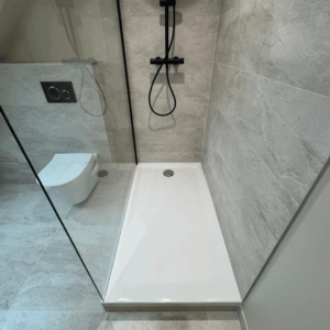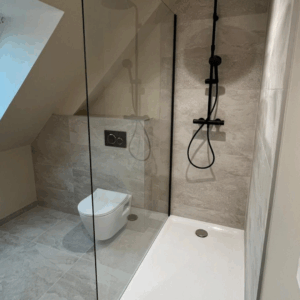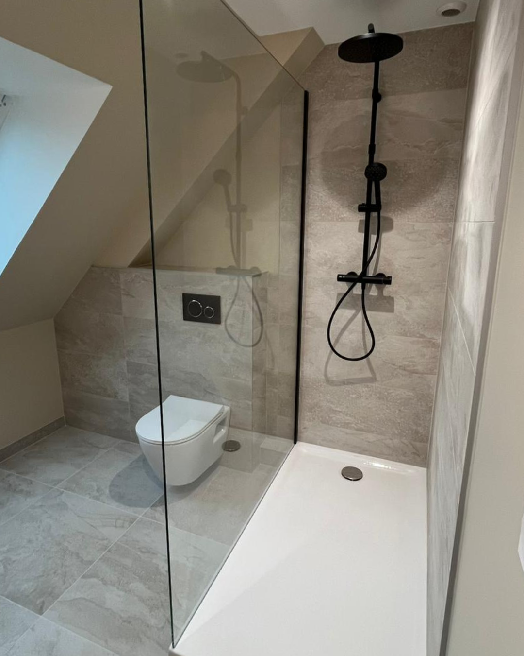 - La pose d’une paroi de douche Alterna – Gamme Plénitude – Profilé Noir Mat 140 cm
