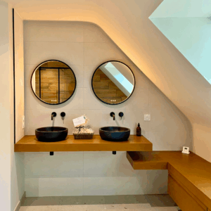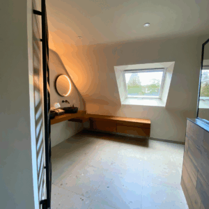 Pour cette rénovation, nous avons réalisé une salle de bains moderne de 14 m² :
