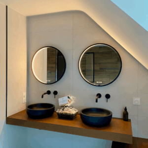 - L’installation de miroirs LED Pradel – Gamme Atelier Black – 60 cm de diamètre