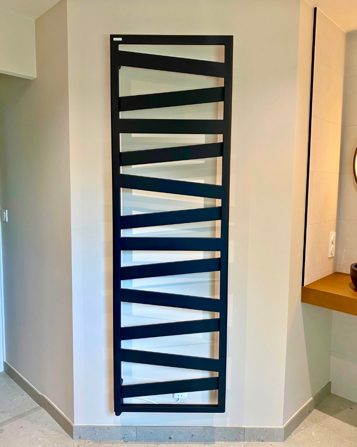 - La pose d’un sèche-serviettes Acova France – Gamme Kazeane – Noir