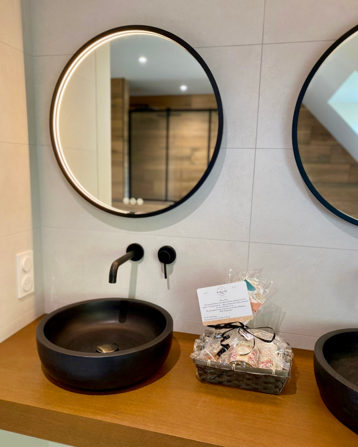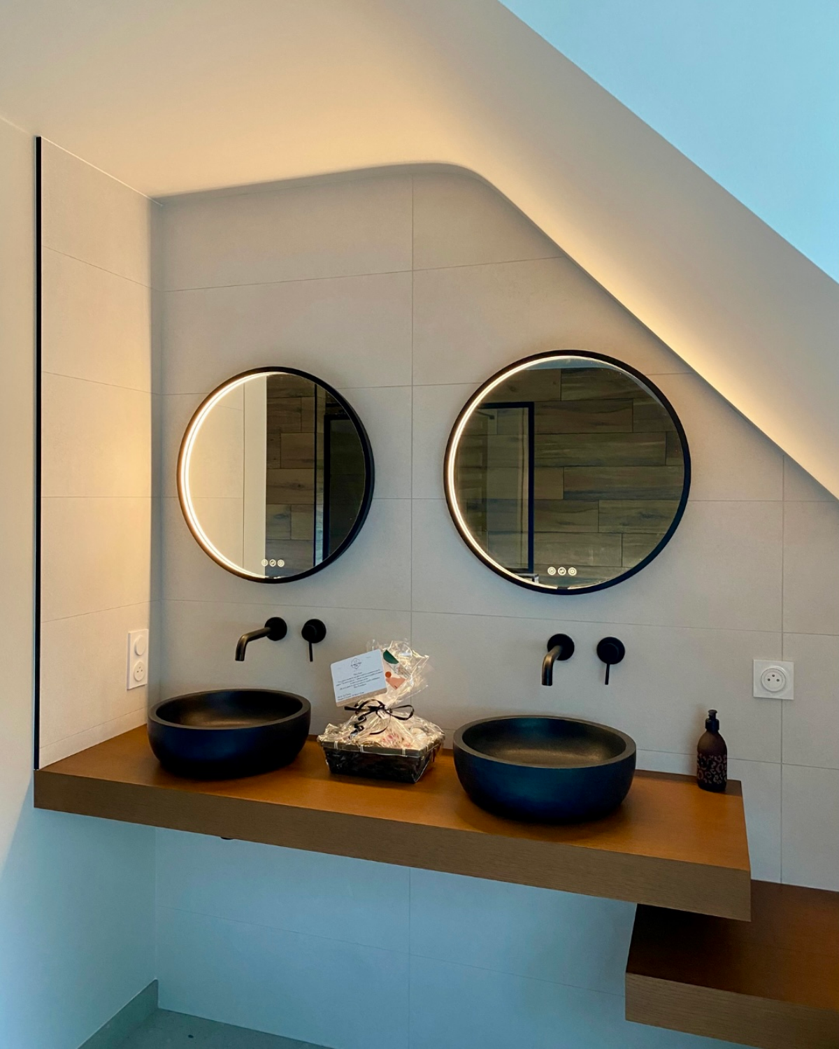 - L’installation de miroirs LED Pradel – Gamme Atelier Black – 60 cm de diamètre