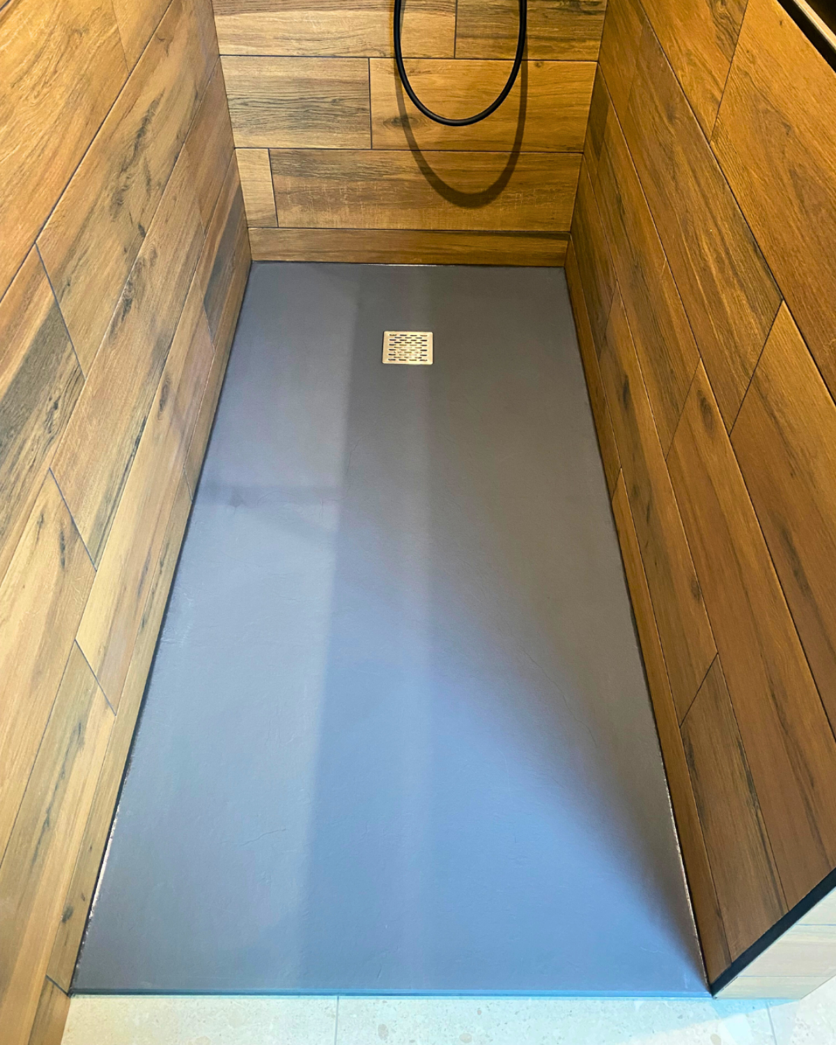 - L’installation d’un receveur Mcbath – Gamme Centuria Stone – Coloris Basalto de dimensions 180*90 cm