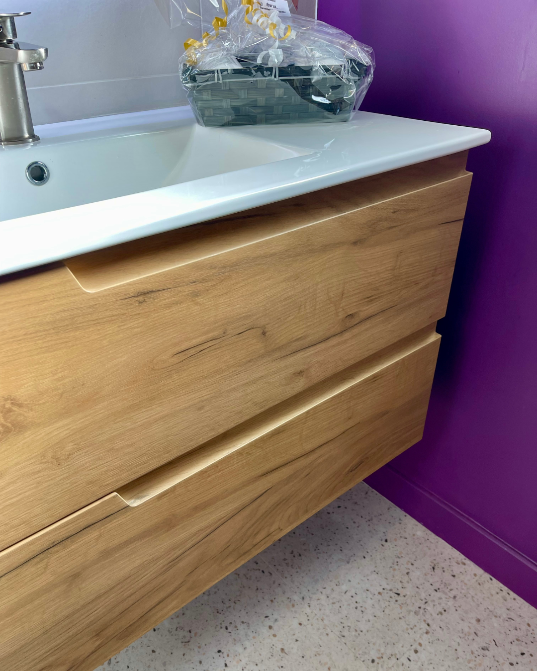 - L’installation d’un meuble vasque 2 tiroirs Salgar – Gamme Vima – Coloris Chêne Africain 100 cm