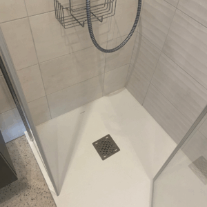 - L’installation d’un receveur mcbath – Gamme Centuria Stone Nox – Blanc 124*80 cm