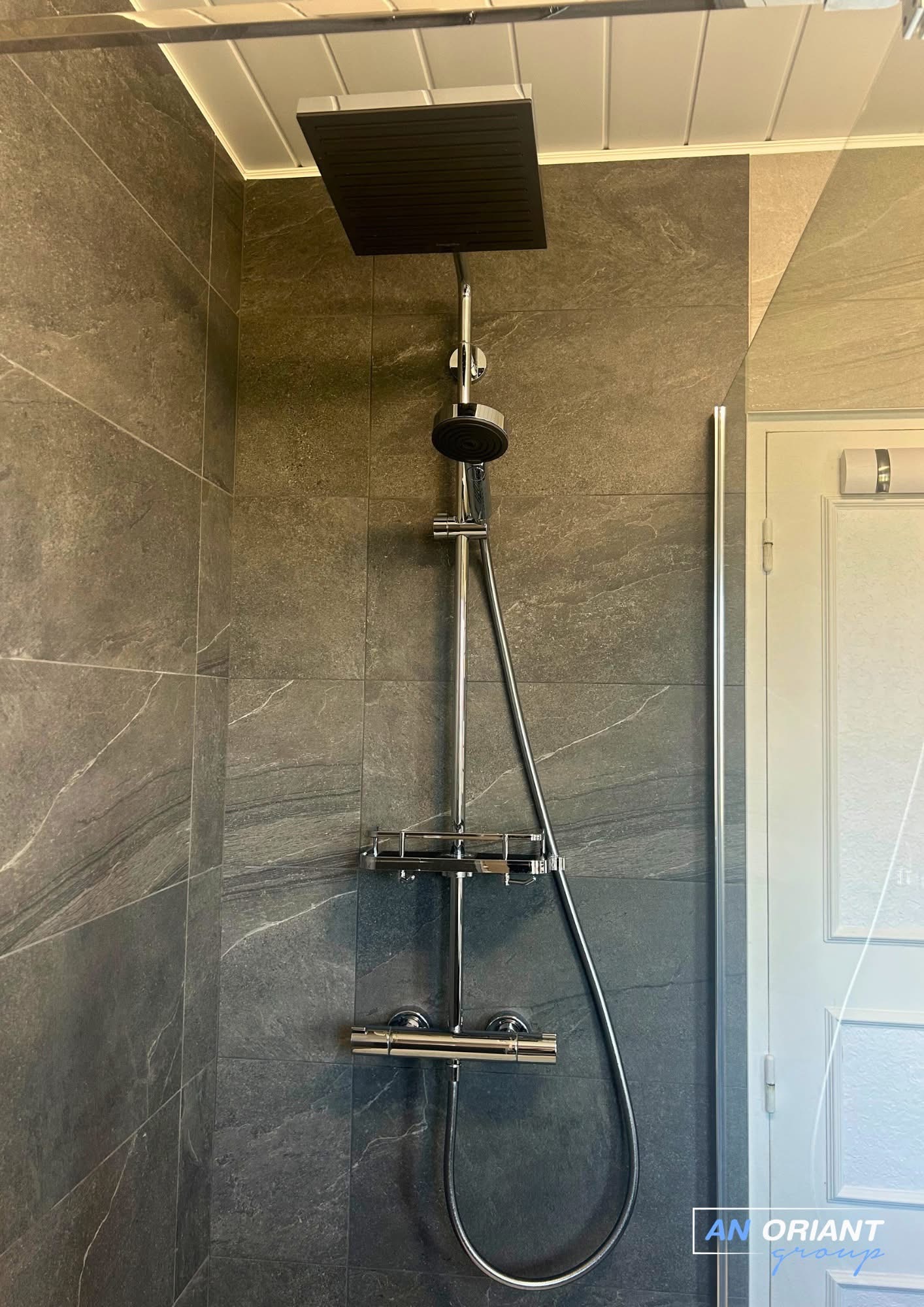 - L’installation d’une colonne de douche Thermostatique gamme Pulsify exclu de chez Hansgrohé.