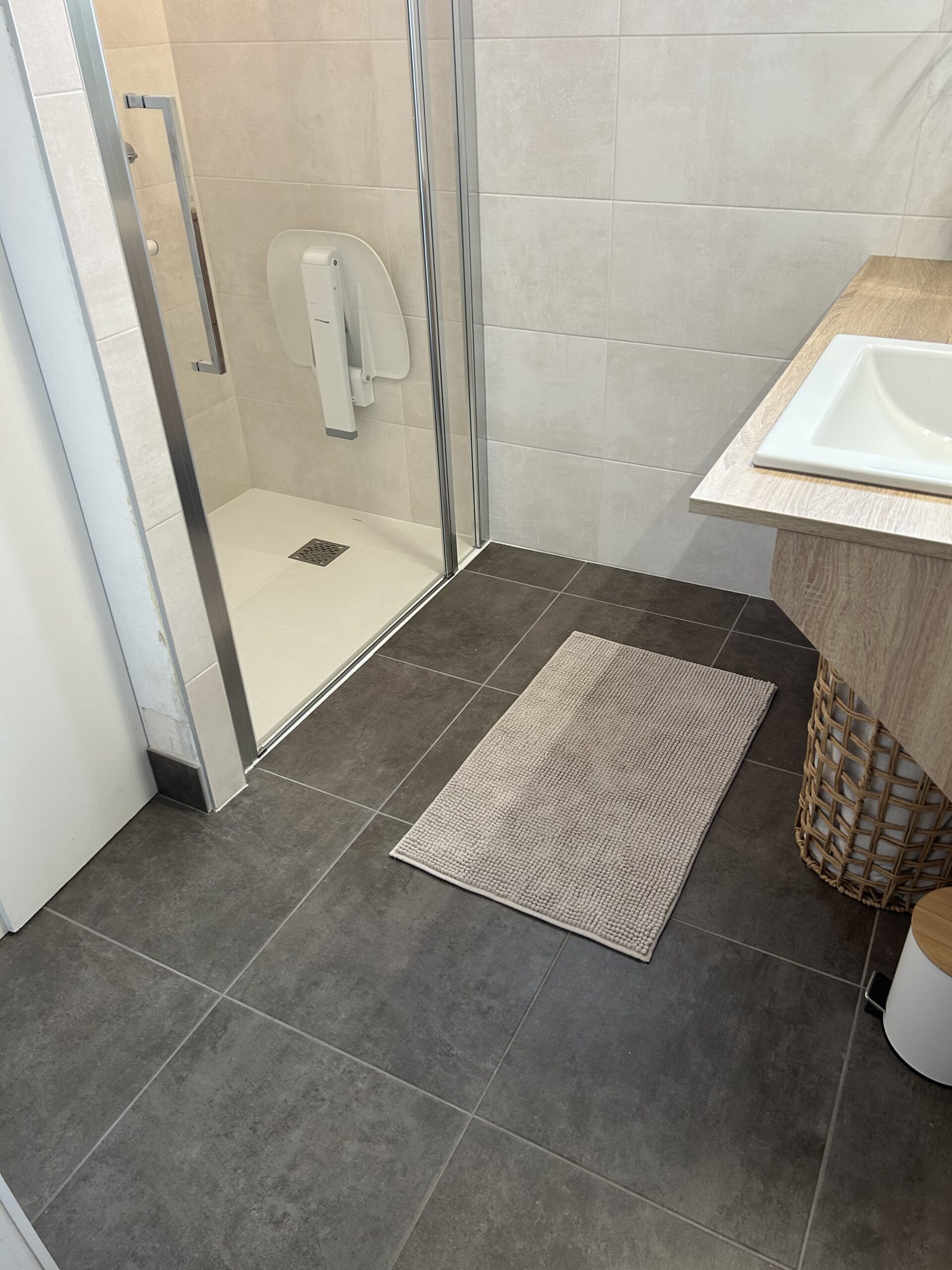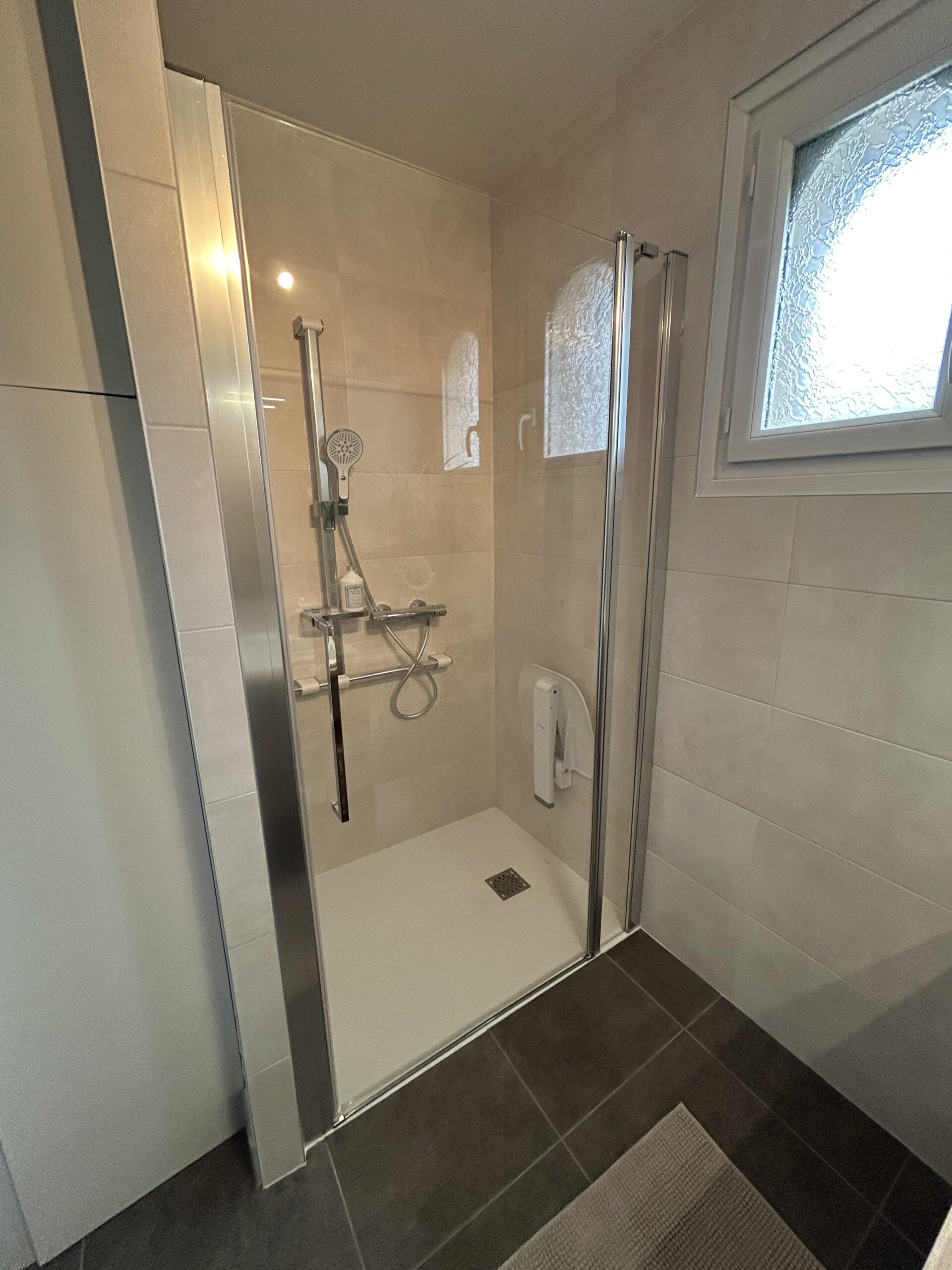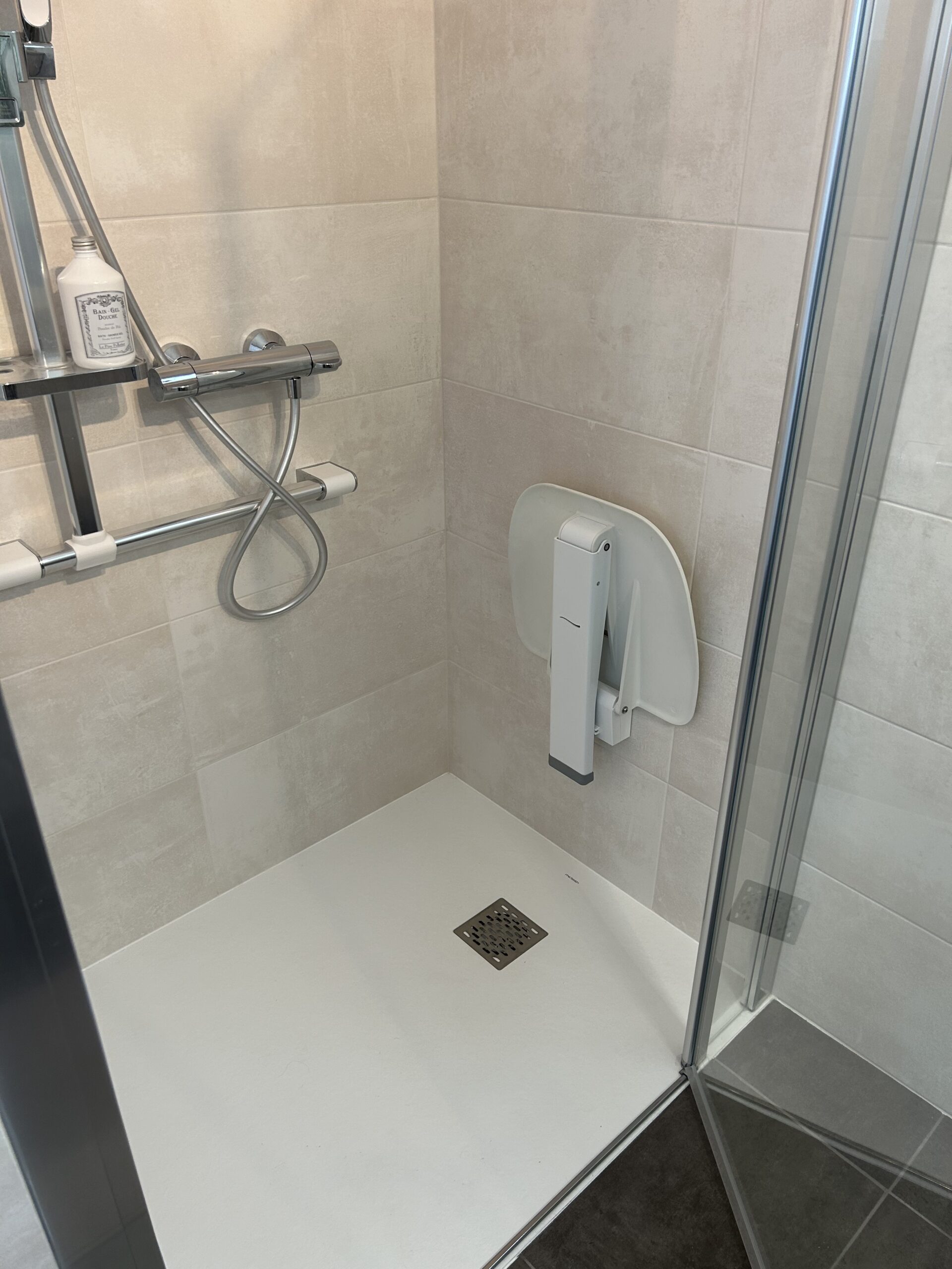 - L’installation d’un siège de douche Alterna / Gamme Concerto en Blanc