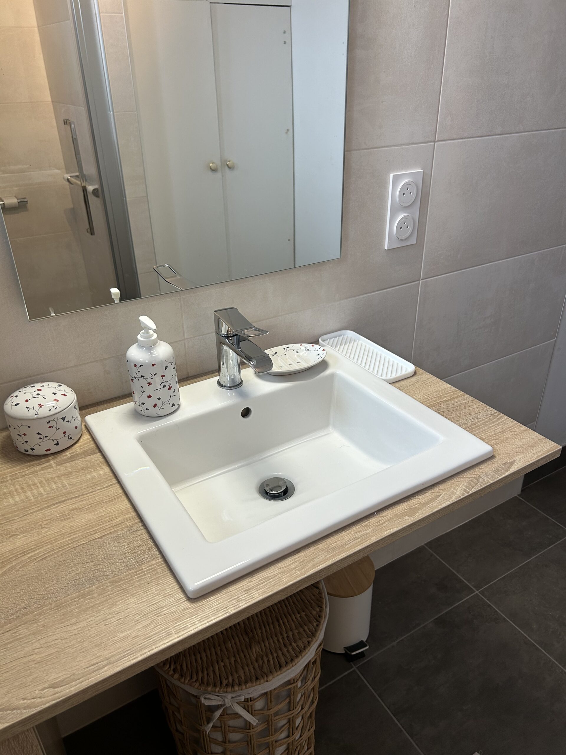 - L’installation d’un miroir de la gamme Vienne en 60 x 80 cm de chez Alterna.