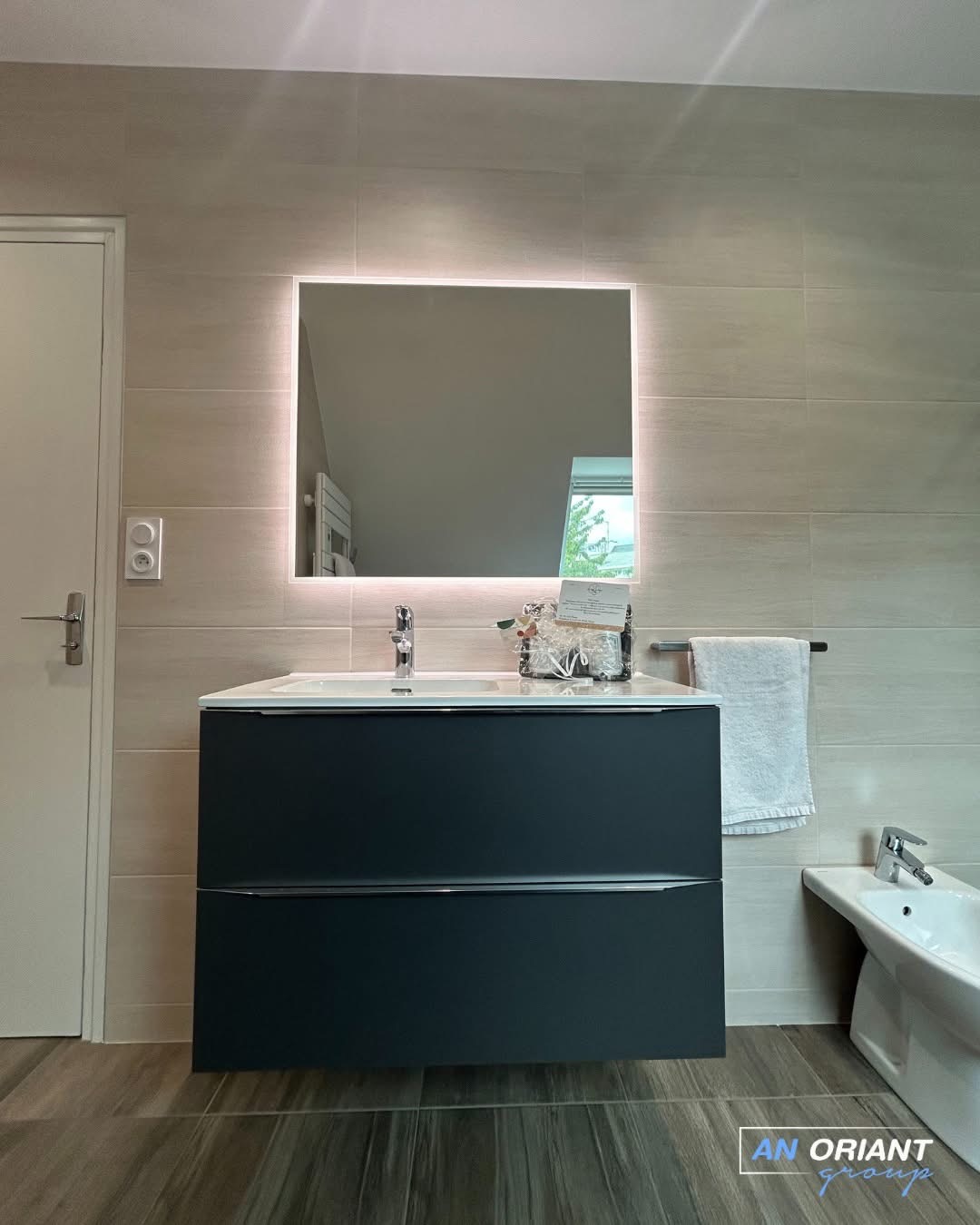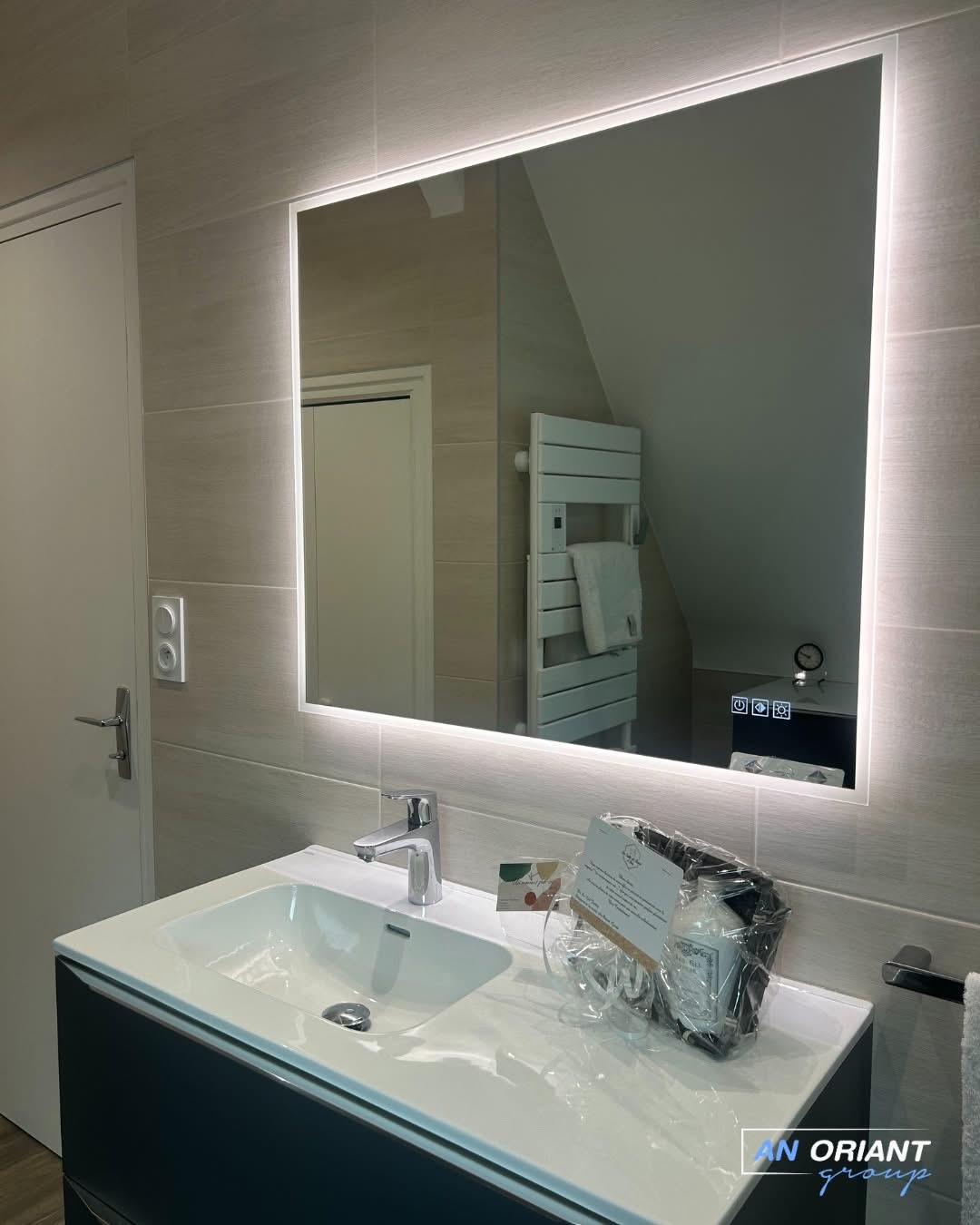 - L’installation d’un miroir lumineux led de la gamme Paris en 90 x 80 cm de chez Alterna.