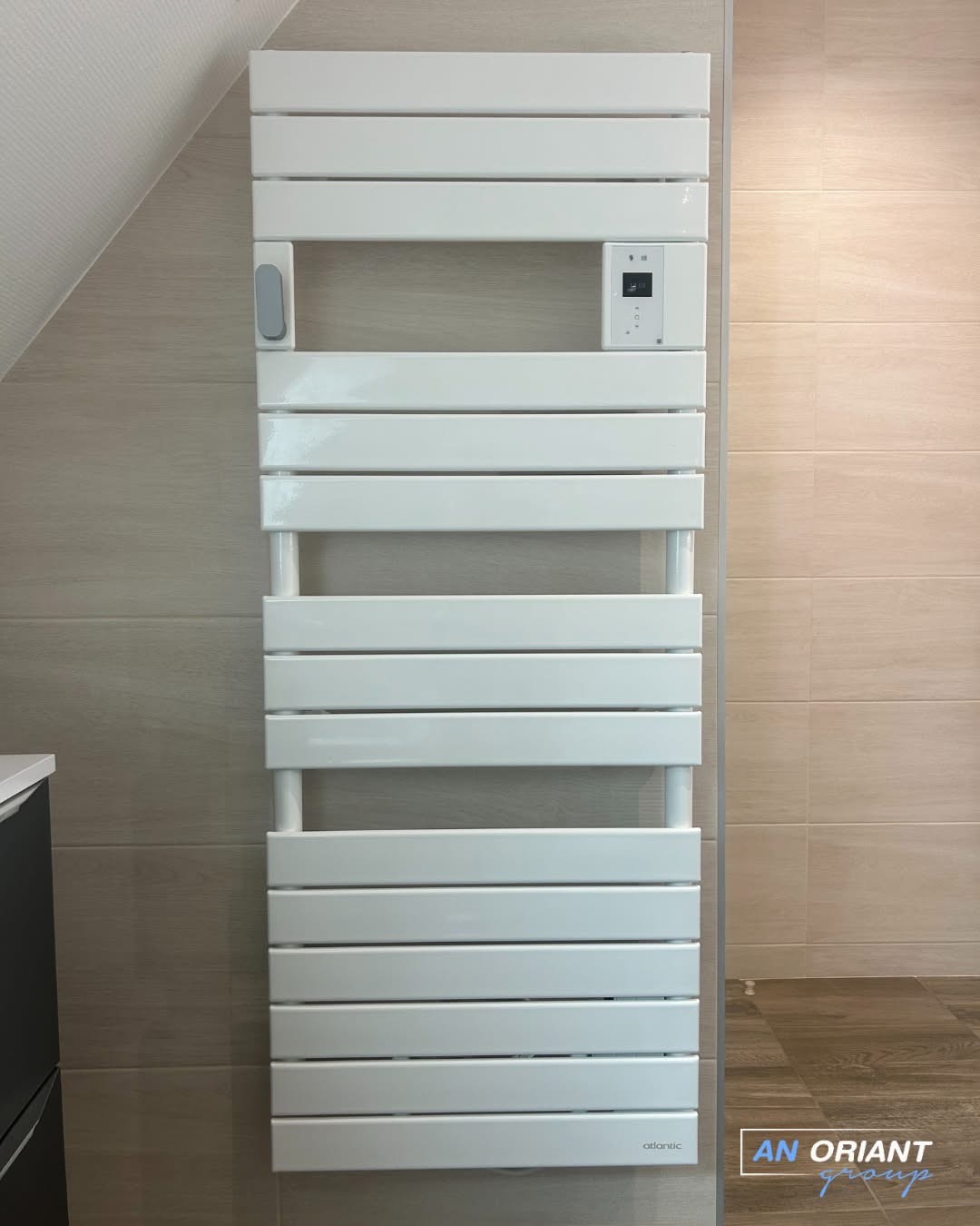 - L’installation d’un sèche serviettes gamme Adélis blanc de chez Atlantic